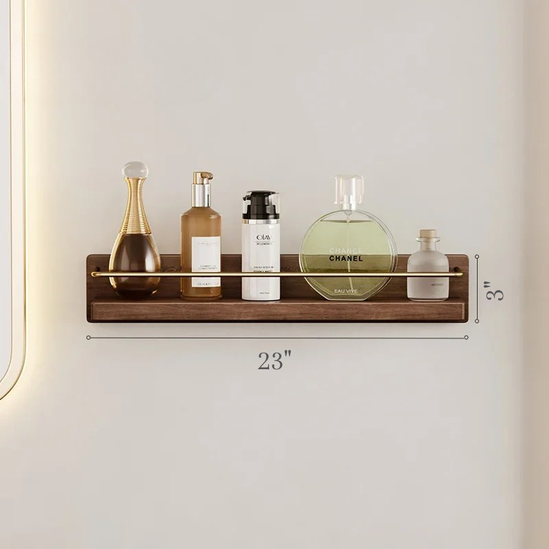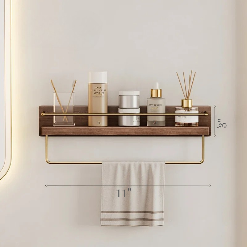 Wall Hanging Storage Bathroom Shelving Wooden Brass Towel Holder Bars