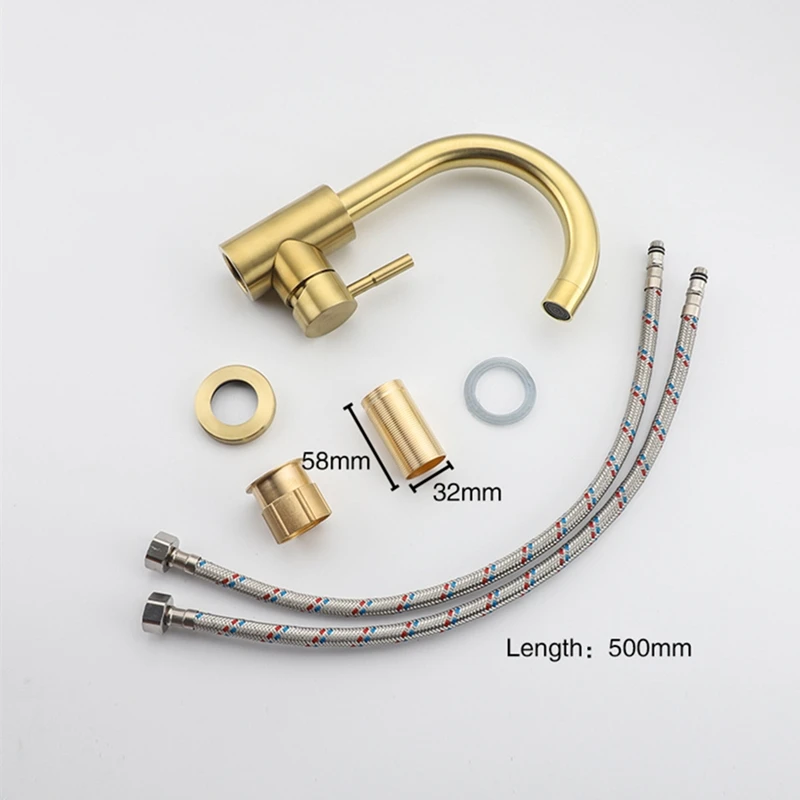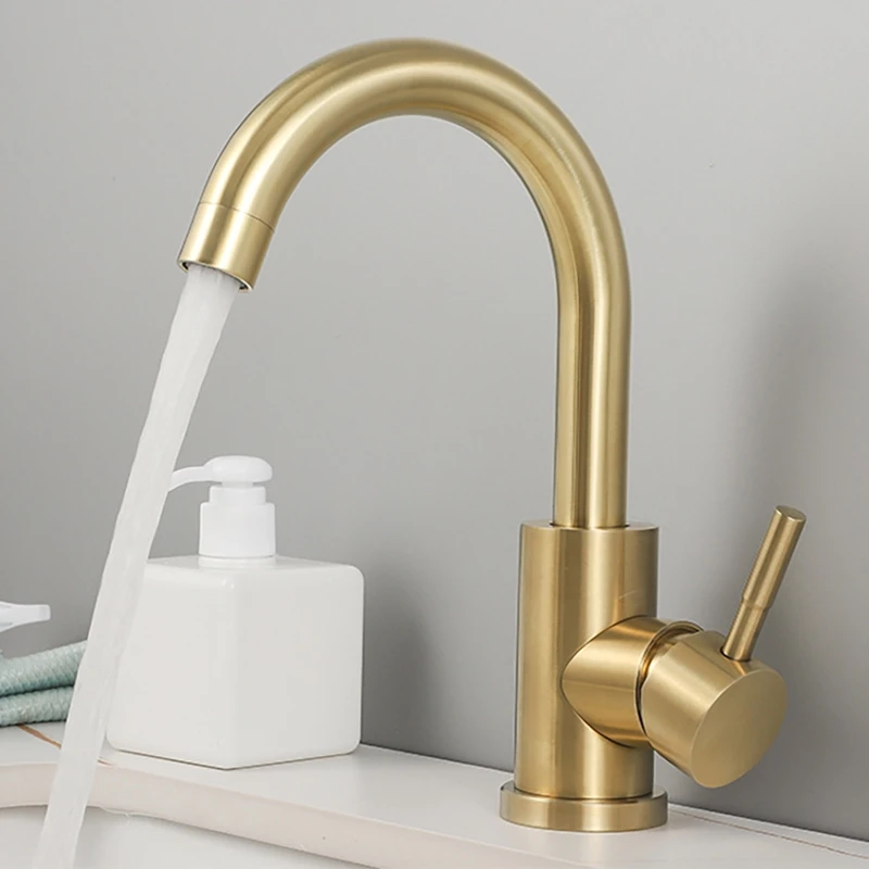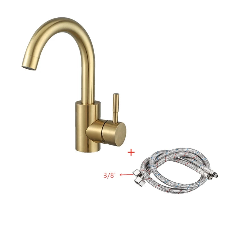 Stainless Steel Basin Faucet Brushed Gold Rotating Deck Mixer Tap