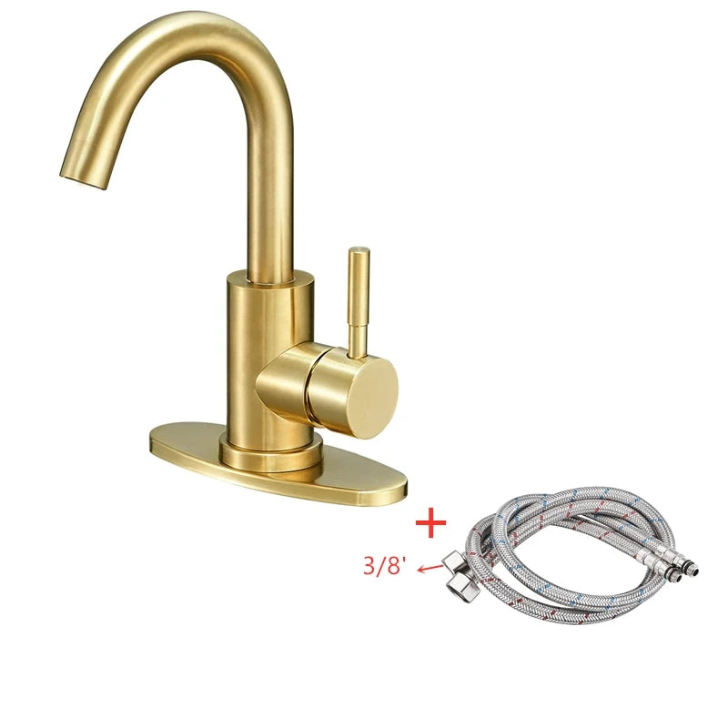 1 * Stainless Steel Basin Faucet Brushed Gold Rotating Deck Mixer Tap