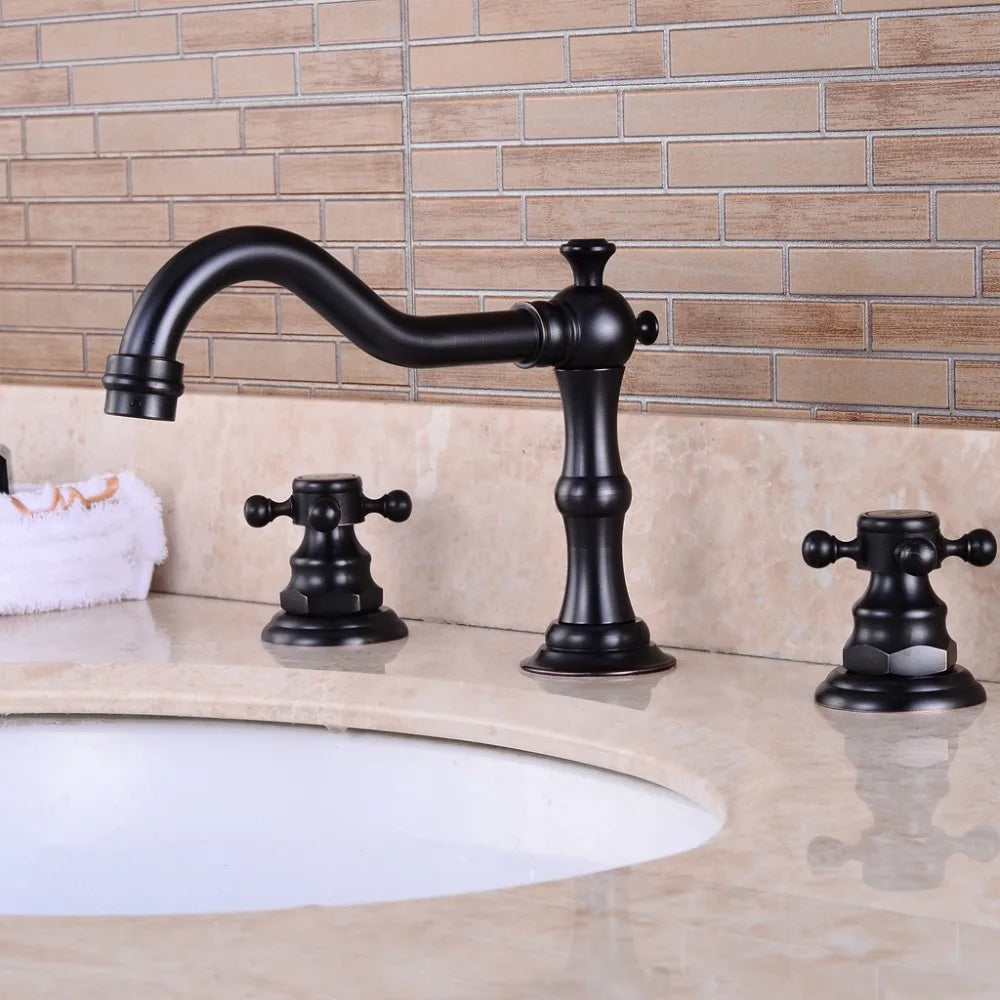 3 Hole Deck Mounted Dual Handle Mixer Tap Widespread Sink Faucet