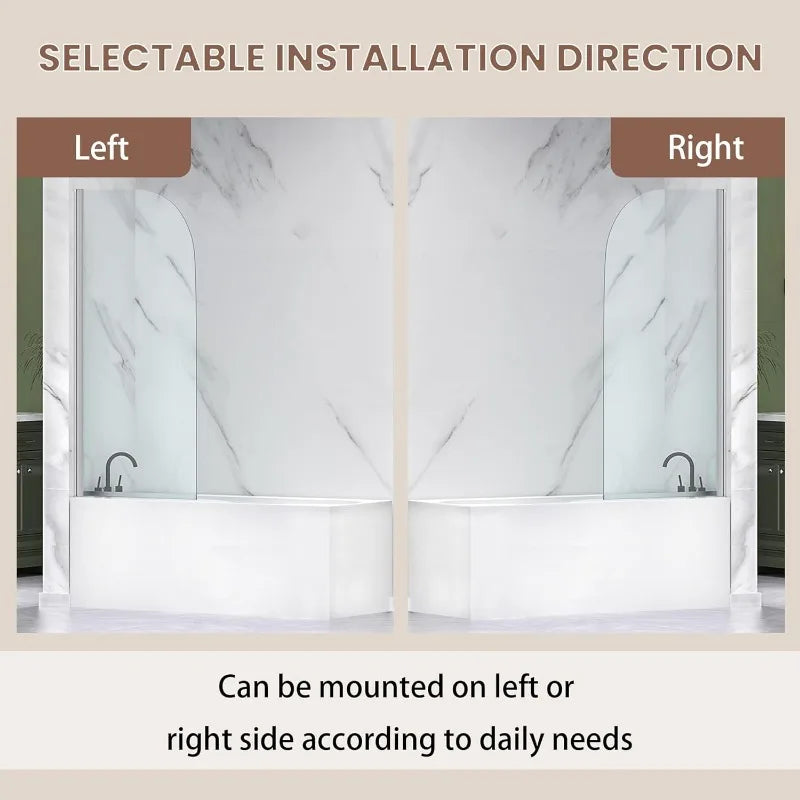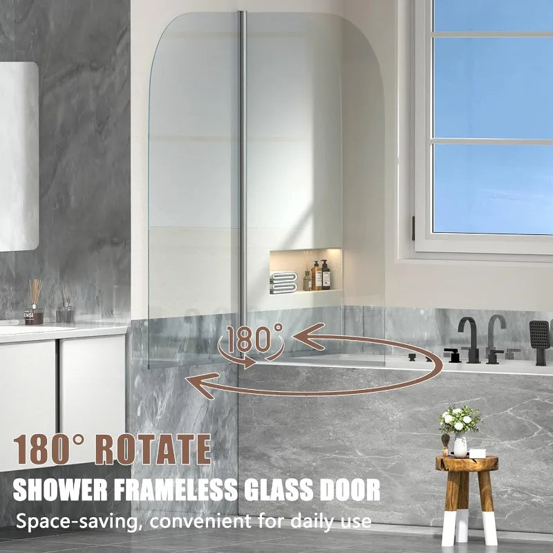 30"×55" Frameless 180° Rotatable Tempered Glass Bathtub Shower Door