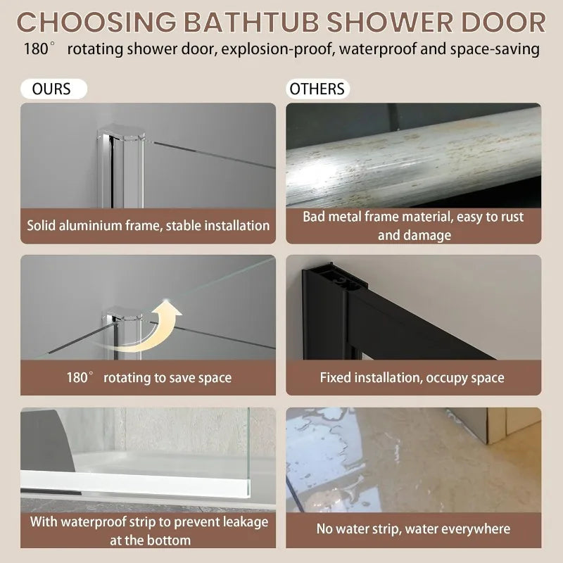 - Bathtub Compatible – Sized specifically for tub edges, this door provides splash protection while preserving a spa-like vibe.