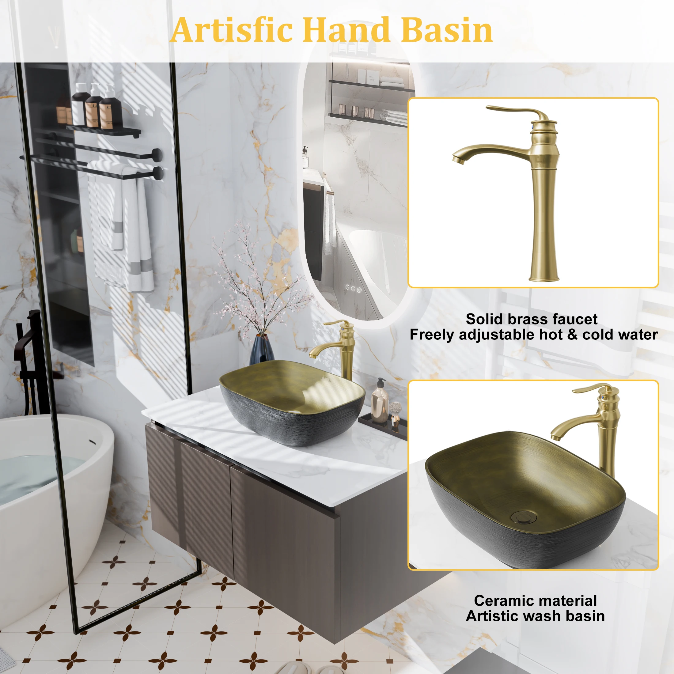 1 * Modern Floating Bathroom Vanity Sink Cabinet with Ceramic Basin Set