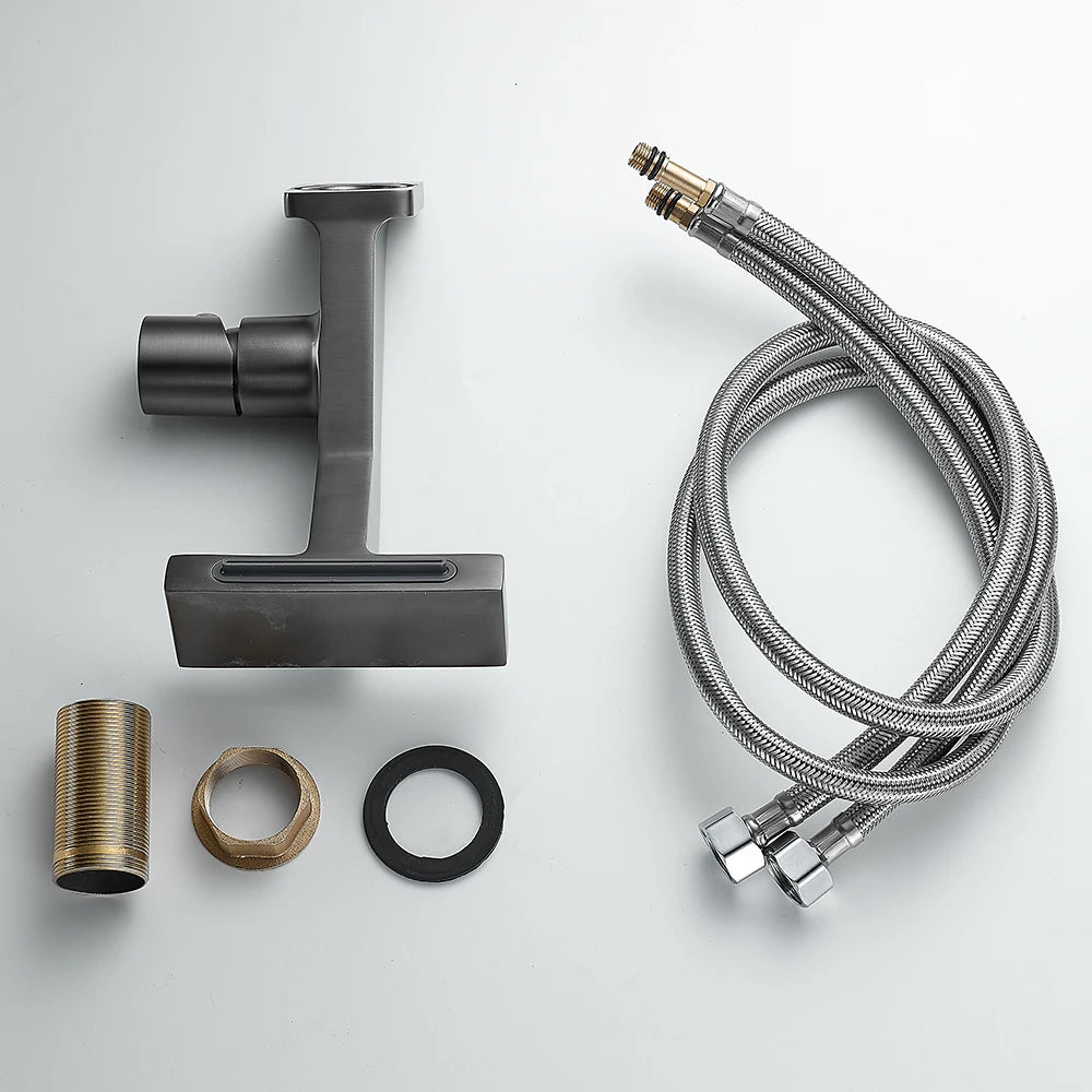 Upgrade your bathroom with this Index Bath sleek and modern Basin Waterfall Mixer Tap, designed to deliver a luxurious waterfall flow. This basin faucet seamlessly combines hot and cold water, allowing you to achieve the perfect temperature with ease. The smooth lever control ensures precise adjustments, while the high-quality material guarantees durability and resistance to corrosion. Perfect for modern, contemporary bathrooms.