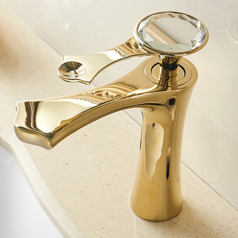 A bathroom Basin Faucet Deck Mounted Mixer Tap made of high-quality material. This Index Bath Single Hole Bathroom Sink Faucet mix tap is perfect for a bathroom sink. It is easy to install, and its single-lever design gives you the ability to control both hot and cold water at the same time. It features a gold-plated ceramic lever, which is beautifully polished to a mirror finish.