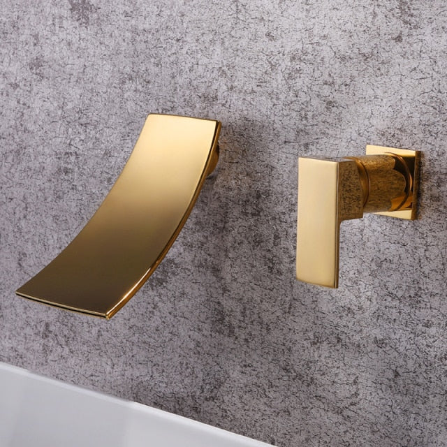 1 * Basin Faucet Gold Bathroom Faucet In-Wall Black Waterfall Faucet