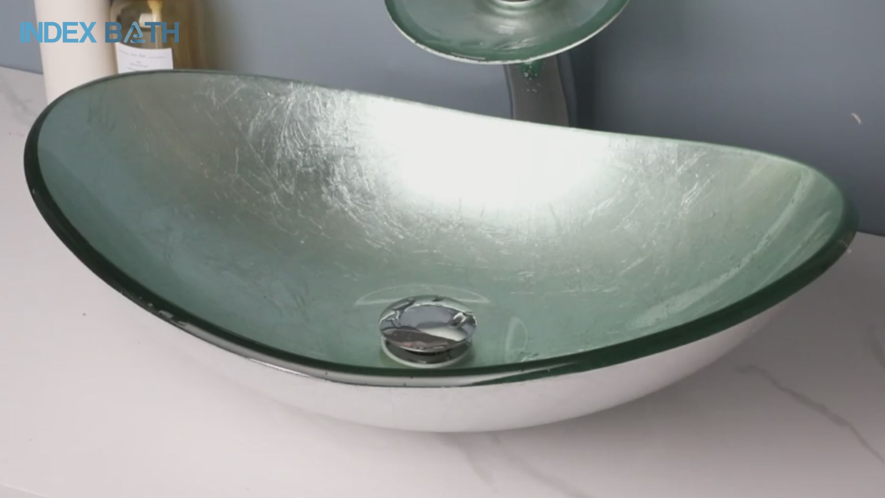 The Index Bath Glass Washbasin Handpainting Bowl Sink Lavatory Basin is a stunning work of art, meticulously handpainted to create a unique masterpiece. Complete with a matching faucet set, this set combines exquisite design with superior durability. Upgrade your bathroom with this captivating centerpiece.
