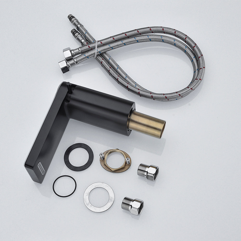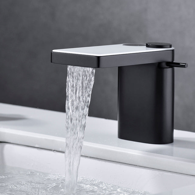 This is an amazing Bathroom LED Digital Basin Faucet Black Water Power Basin Mixer Tap from Index Bath that can be used for the decoration of bathrooms and kitchens. It's made of solid brass, durable and steady. Also, it's simple to use. Just press the button to turn it on or off automatically.