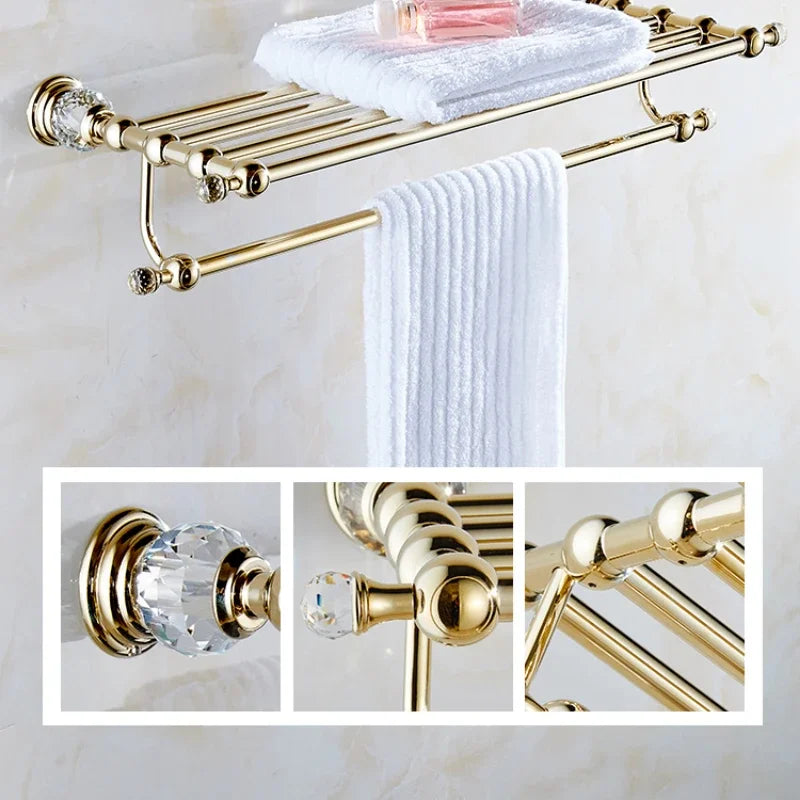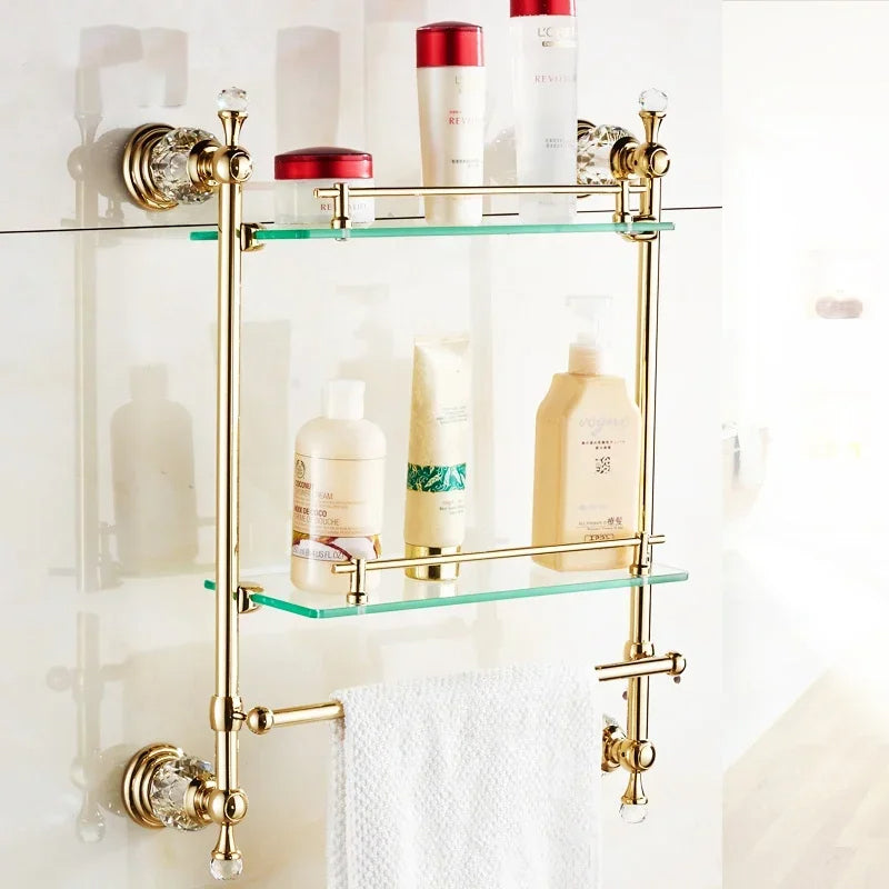 Bathroom Towel Shelf Gold Finished Bath Toilet Bathroom Accessories