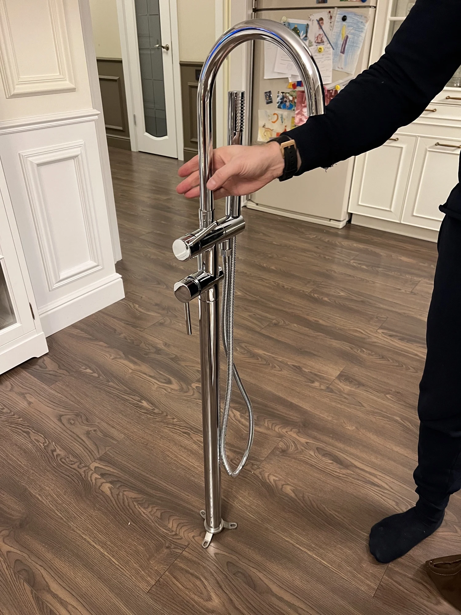 The Index Bath Black Gold Square Bathtub Shower Faucet Floor Faucet Shower Mixer is made from high quality brass. It has a single handle that can be set in any position, making it easy to control the water temperature and volume. It features a ceramic disc valve that ensures a long lifespan and prevents leaks, while the high-quality finish resists tarnishing and corrosion.