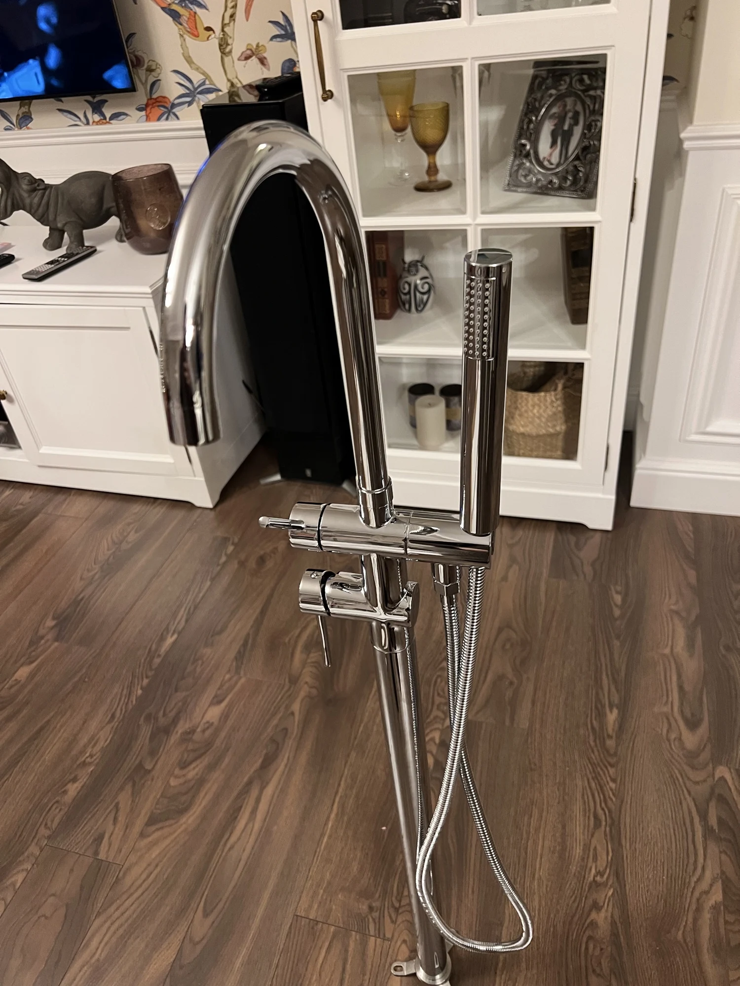 1*Black Gold Square Bathtub Shower Faucet Floor Faucet Shower Mixer