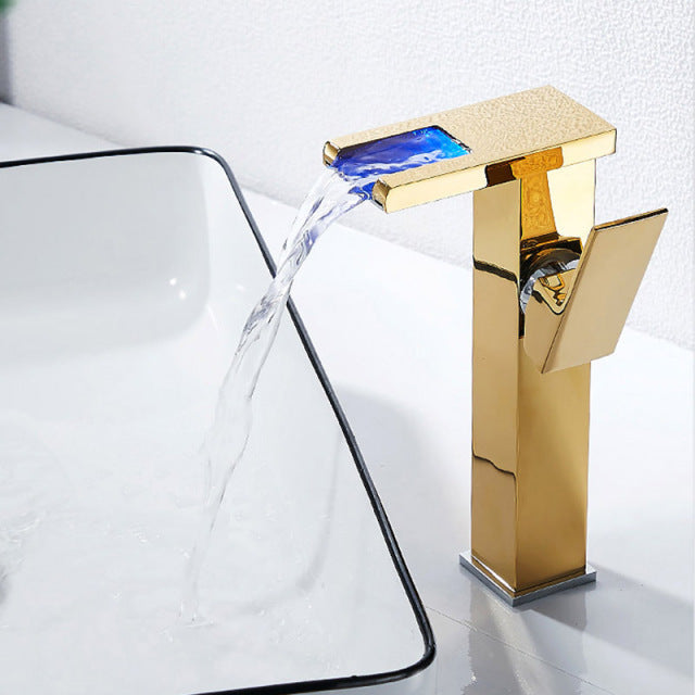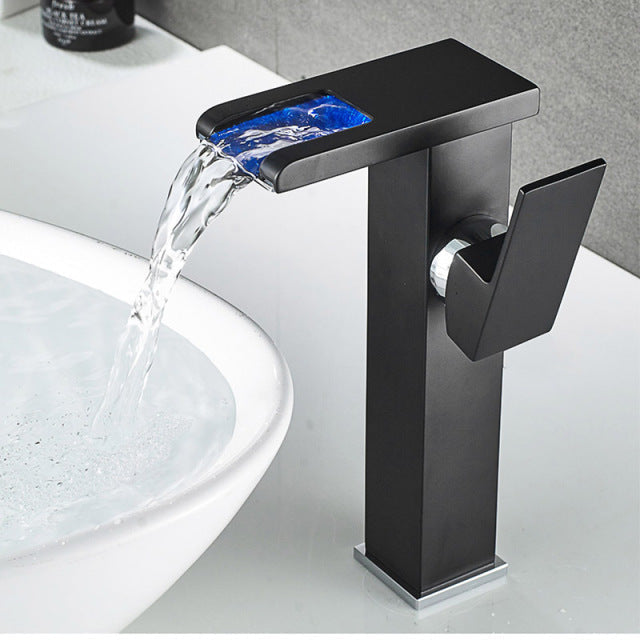 Brass LED Waterfall Bathroom Basin Faucet Cold Hot Water Mixer Tap