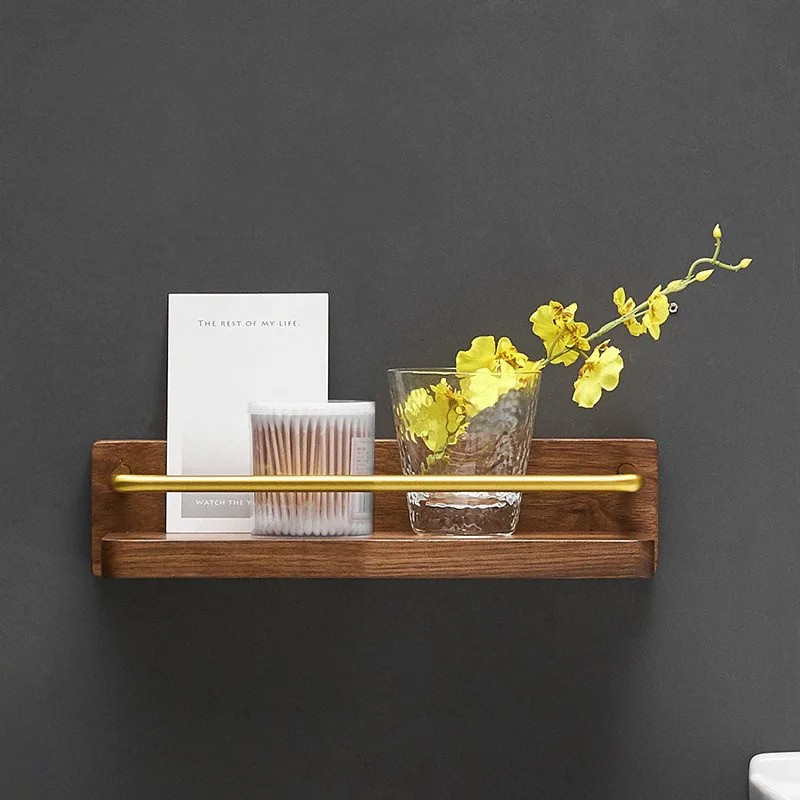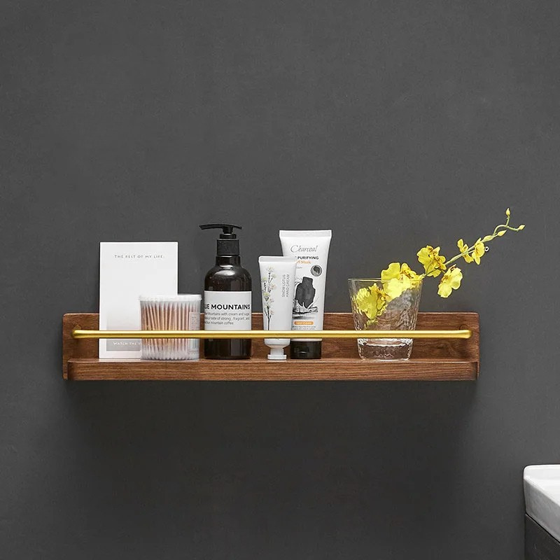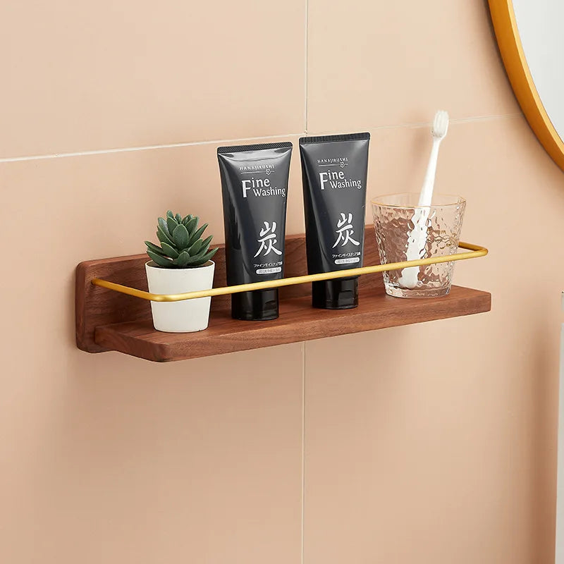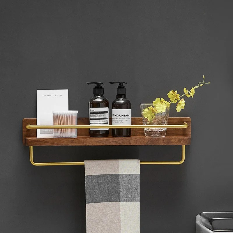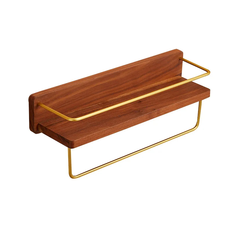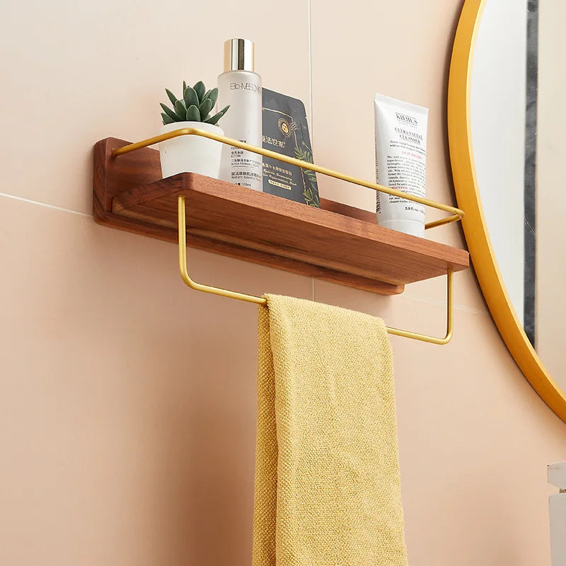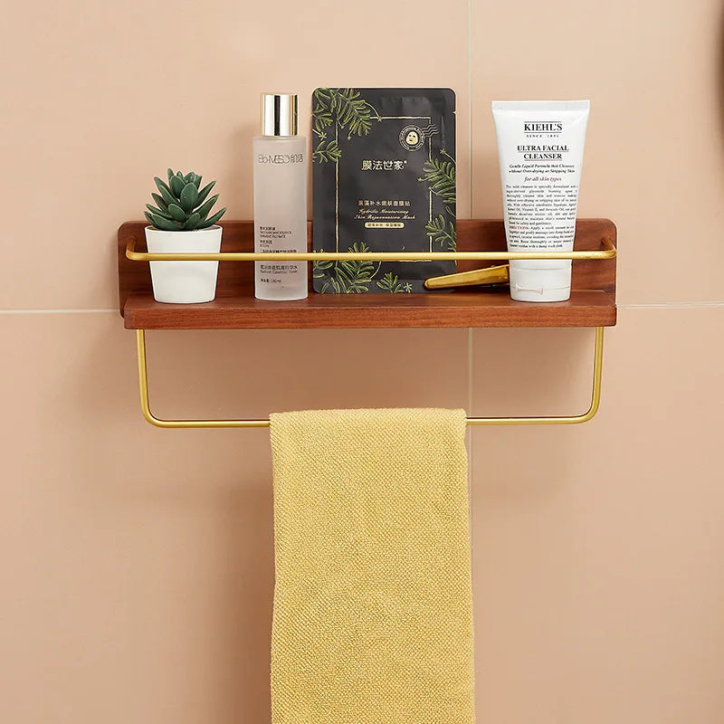 1 * Solid Wood Bathroom Shelf Wall-Mounted Storage Rack with Towel Holder