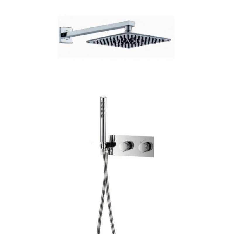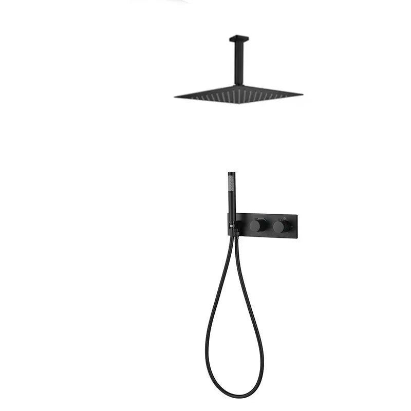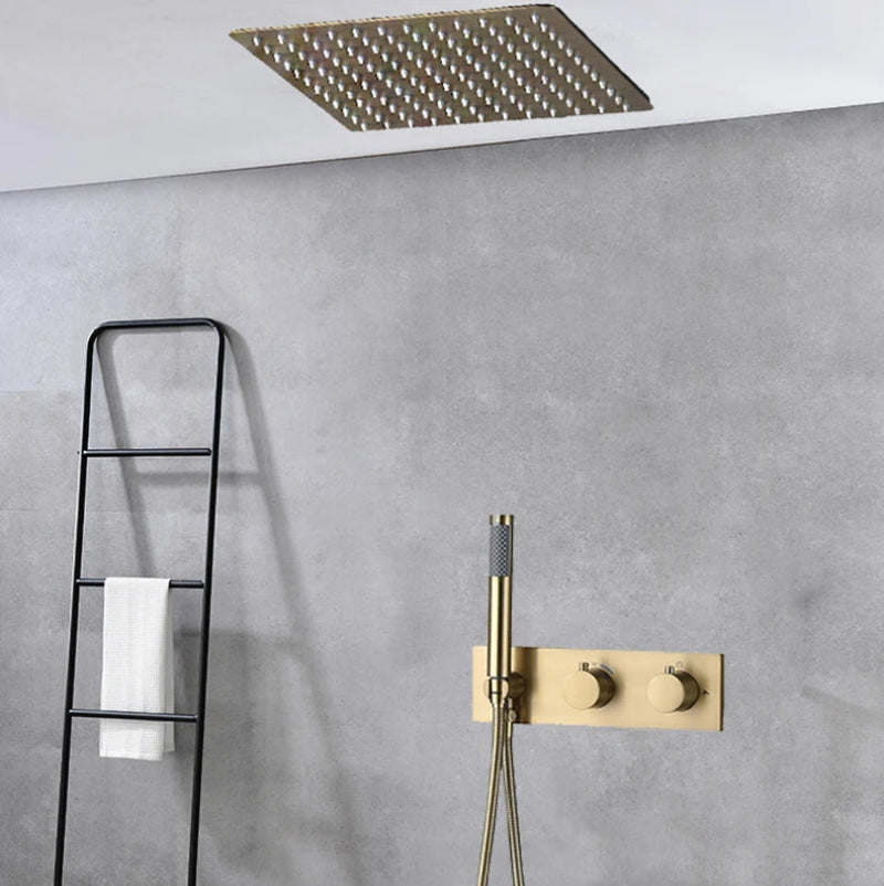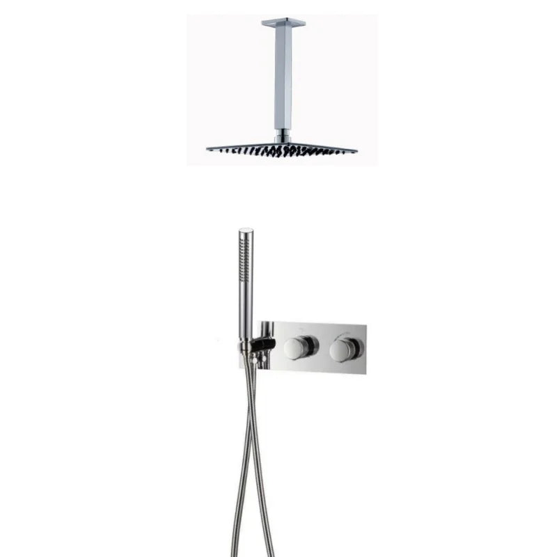 Transform your bathroom into a spa-like retreat with this Thermostatic Brass Rainfall Shower Set with Mixer Temperature Control from Index Bath, designed for both ceiling or wall installation. Featuring a sleek modern finish, this shower system delivers luxury, performance, and safety in one elegant package.