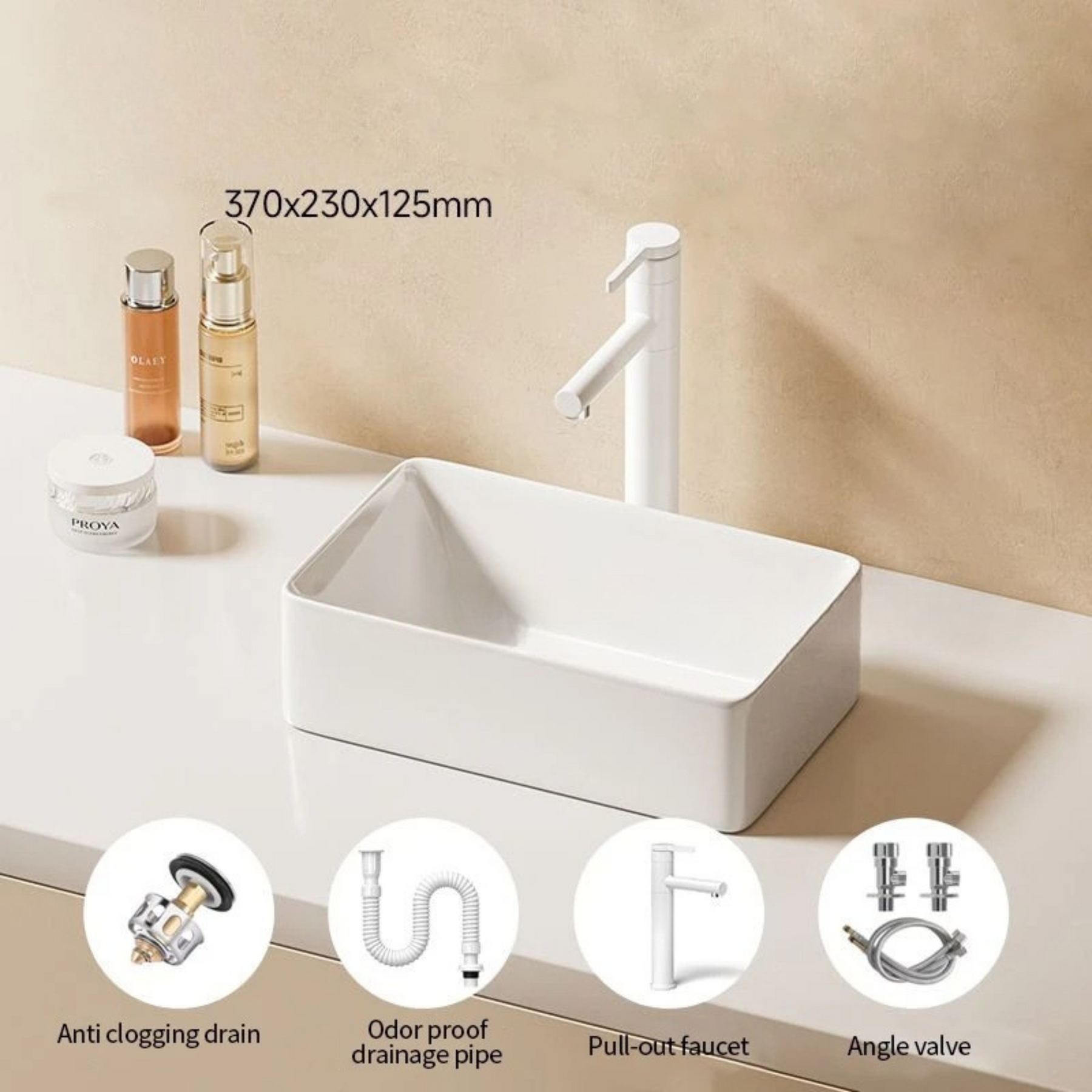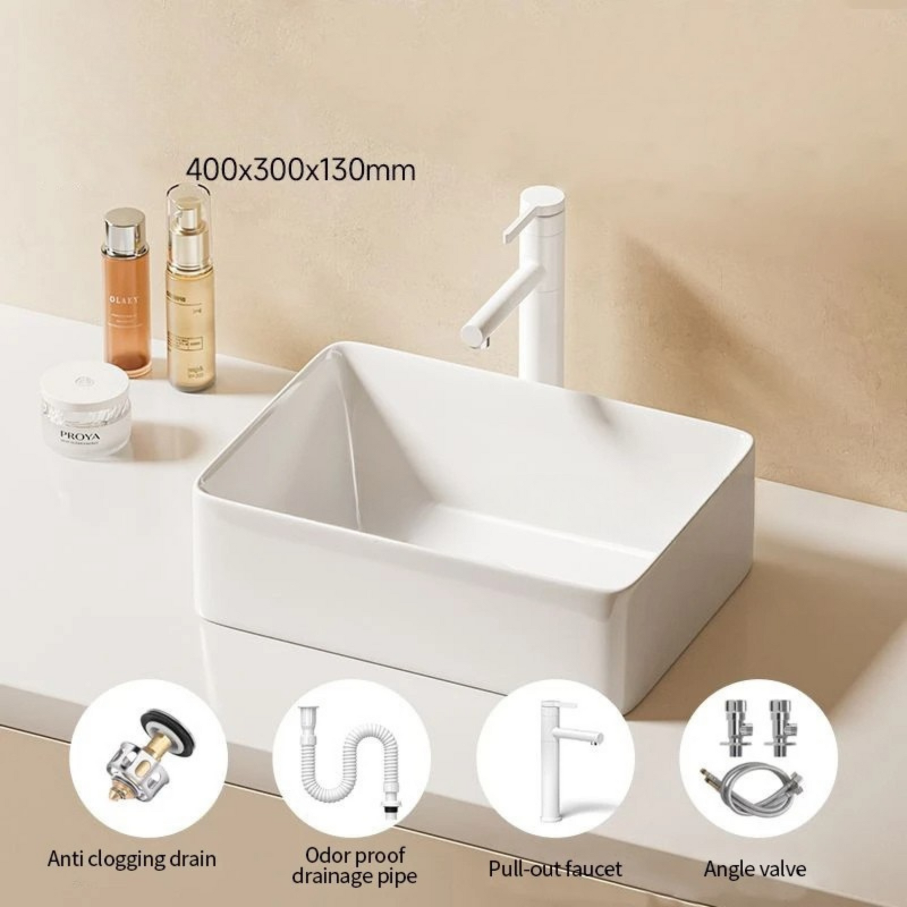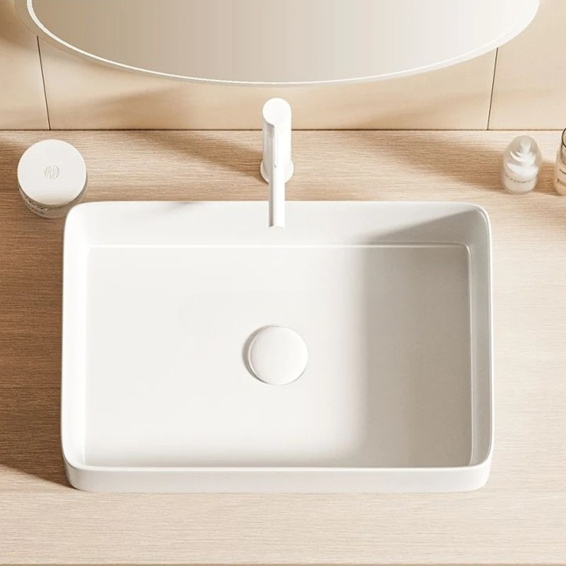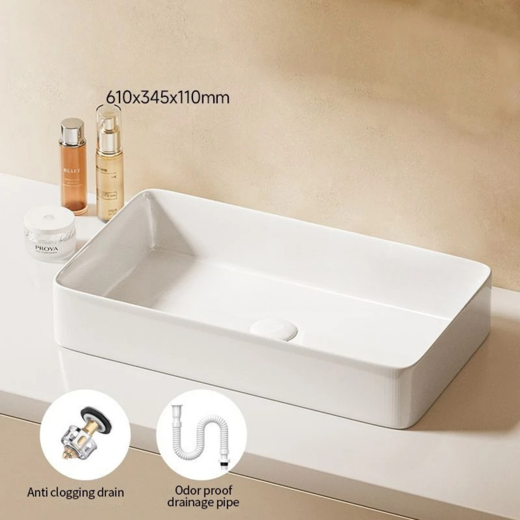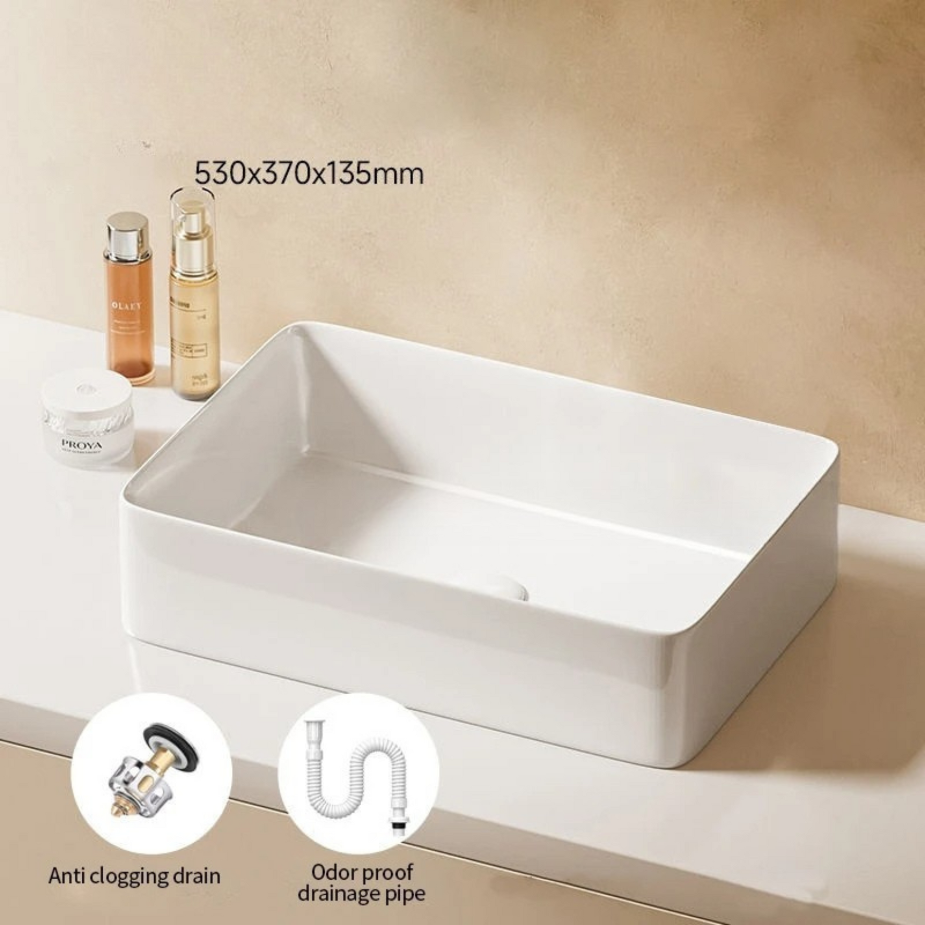 Elevate your bathroom with this Above Counter Single Ceramic Bathroom Vessel Wash Basin Sink from Index Bath, designed for above-counter installation. Its clean lines and smooth, glossy surface make it an ideal centerpiece for vanities in contemporary, traditional, or minimalist interiors.