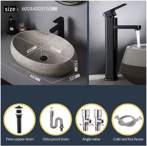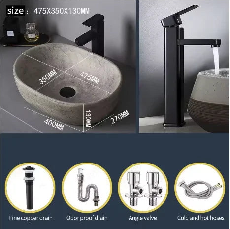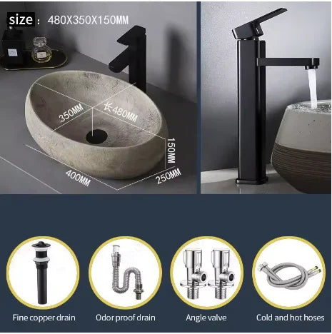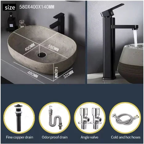 1 * Ceramic Countertop Sink Oval Washbasin Bathroom Balcony Sink