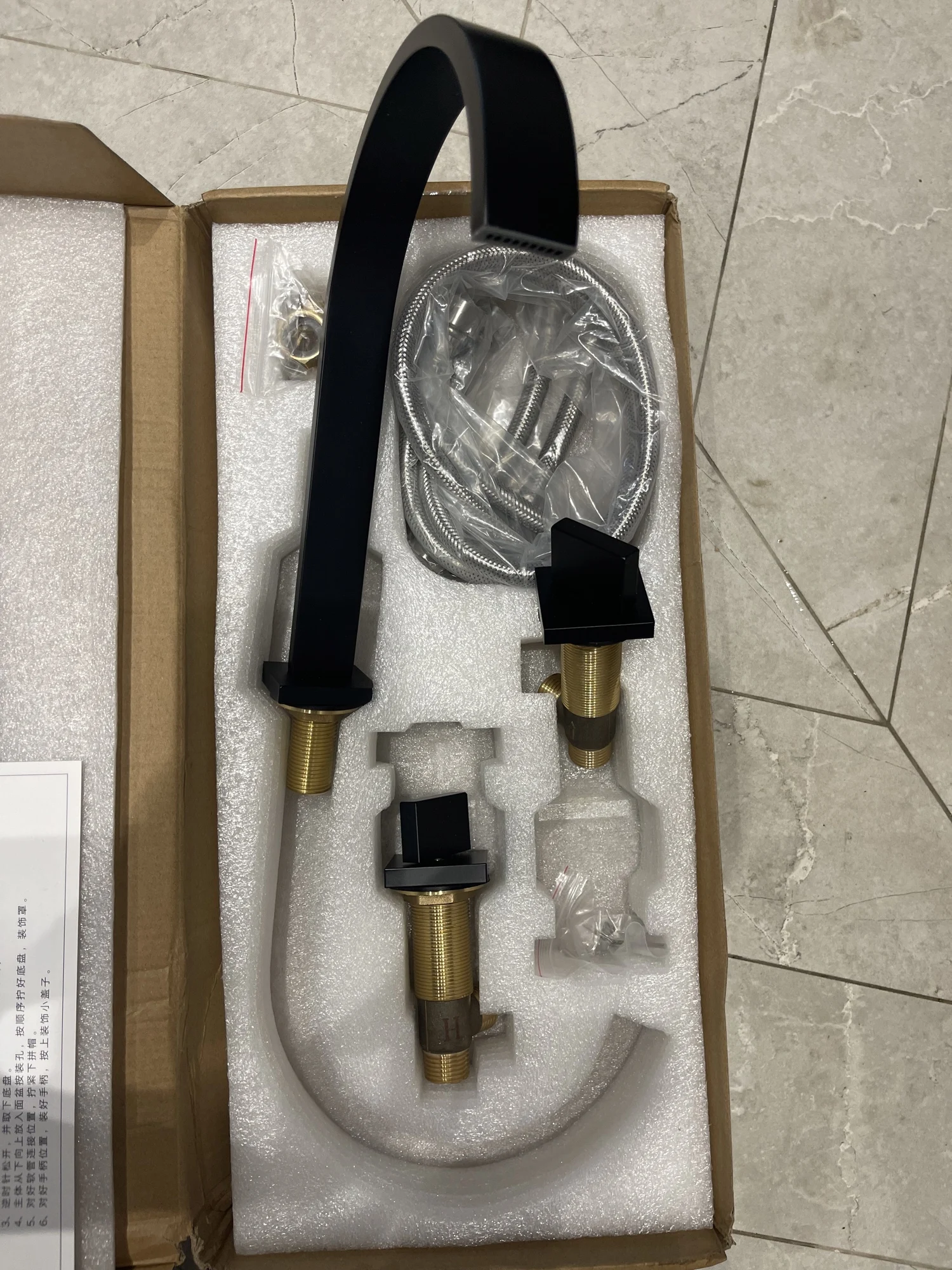 1 * Deck Mounted Square Bathroom Sink Faucets 3 Hole Double Handle Tap