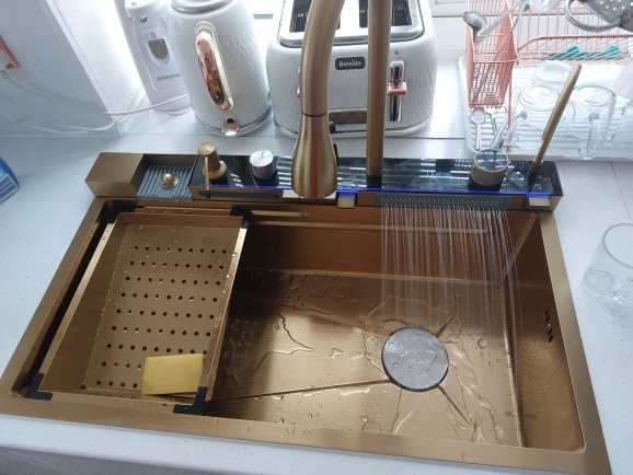 1*Double Waterfall Sink Stainless Steel Kitchen Sink Wash Basin For Kitchen
