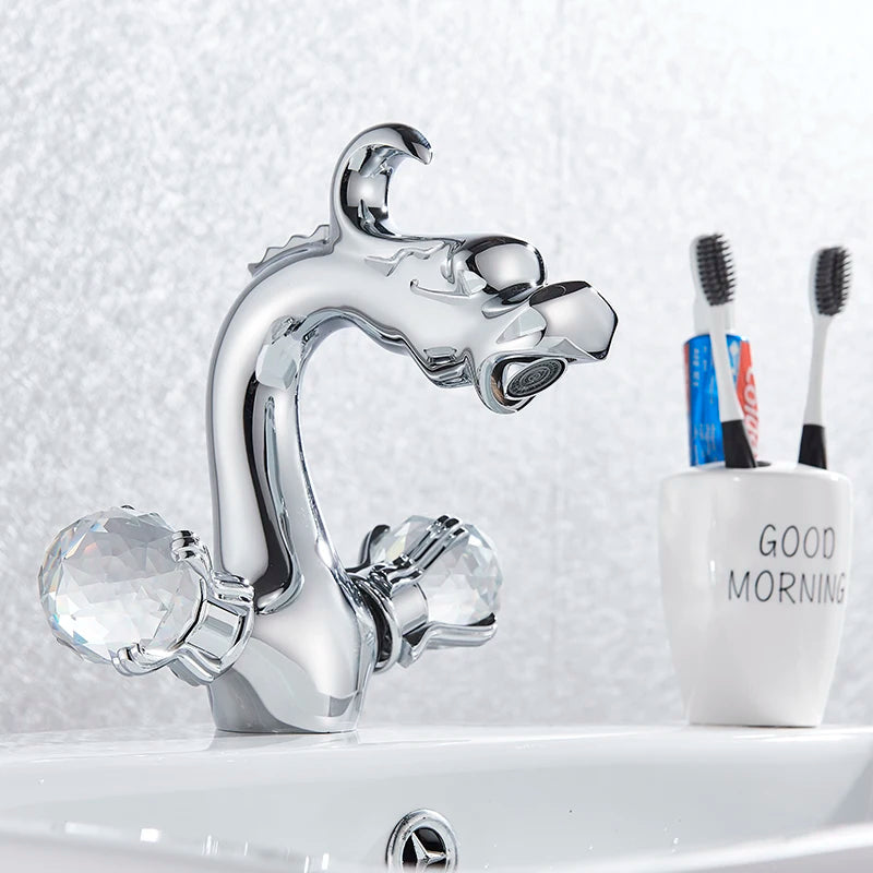 Dragon Bathroom Sink Faucet Double Luxurious Crystal Handwheel Tap