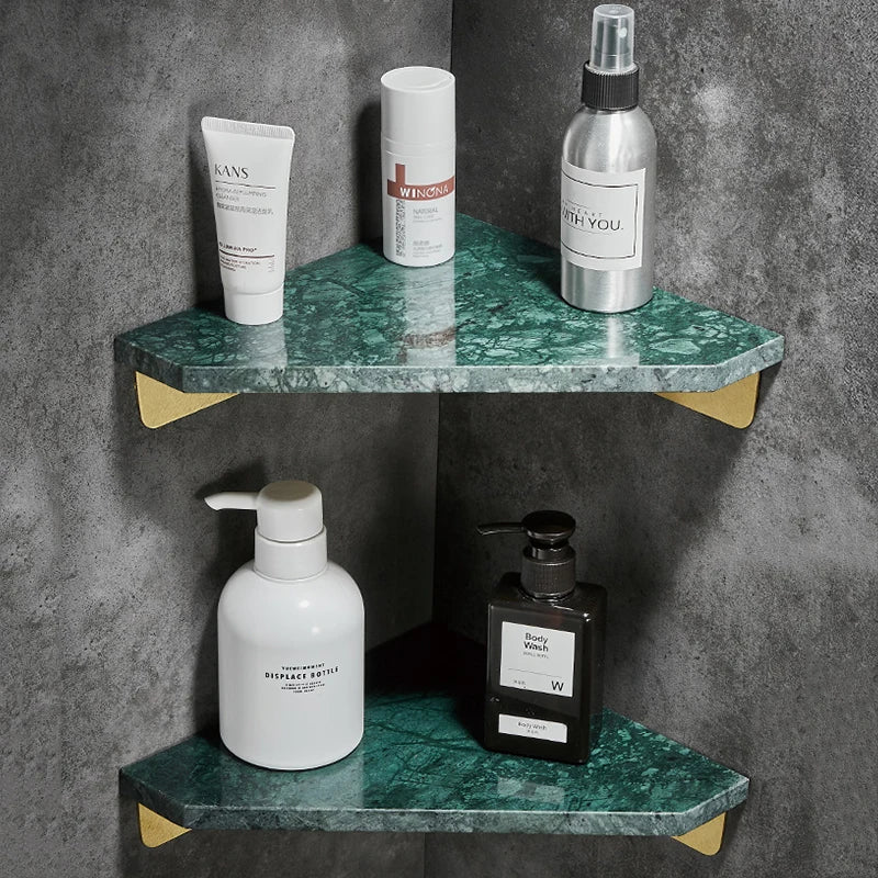 Emerald Marble Corner Shelf Bathroom Cosmetic and Shower Storage Rack