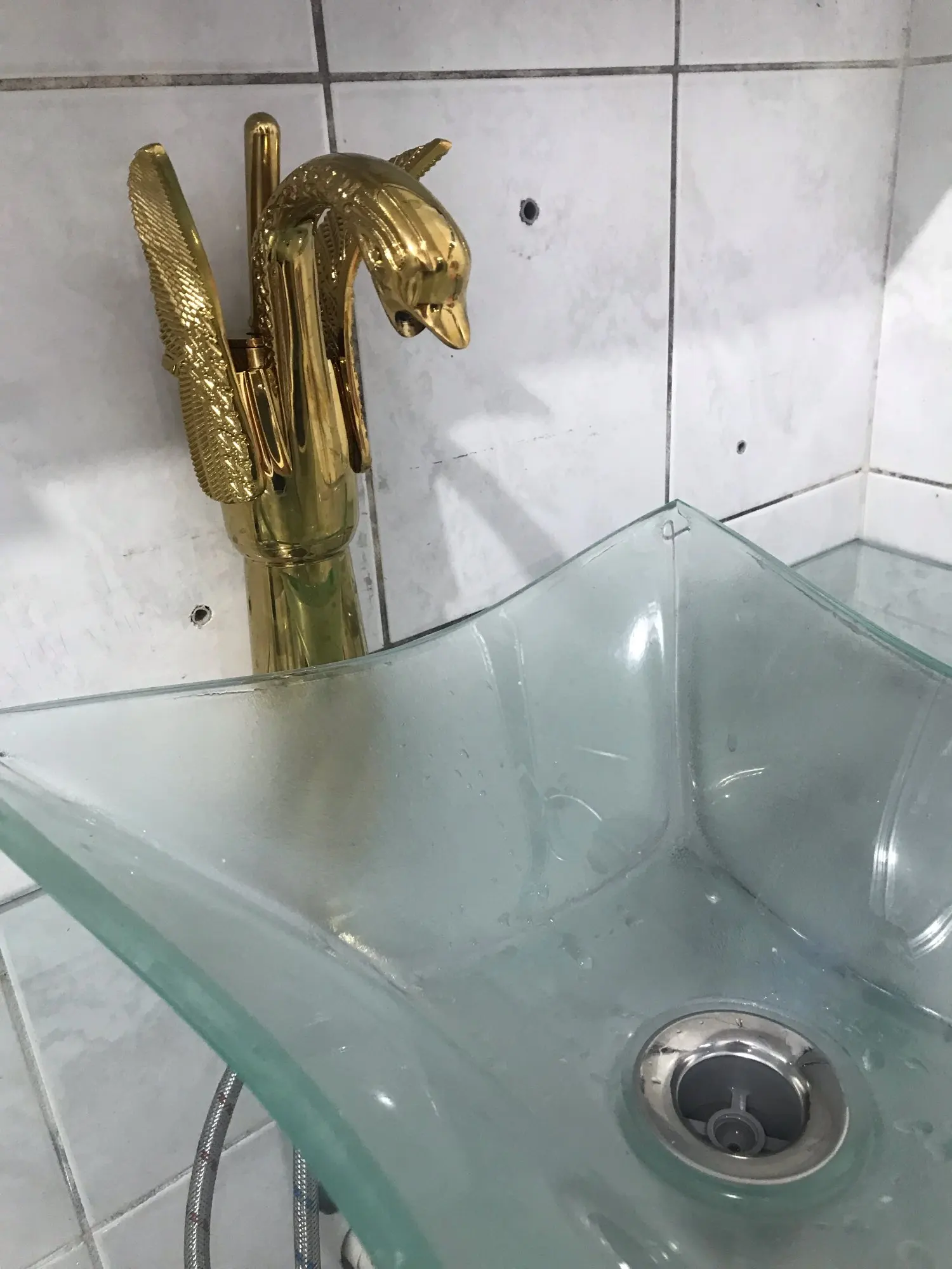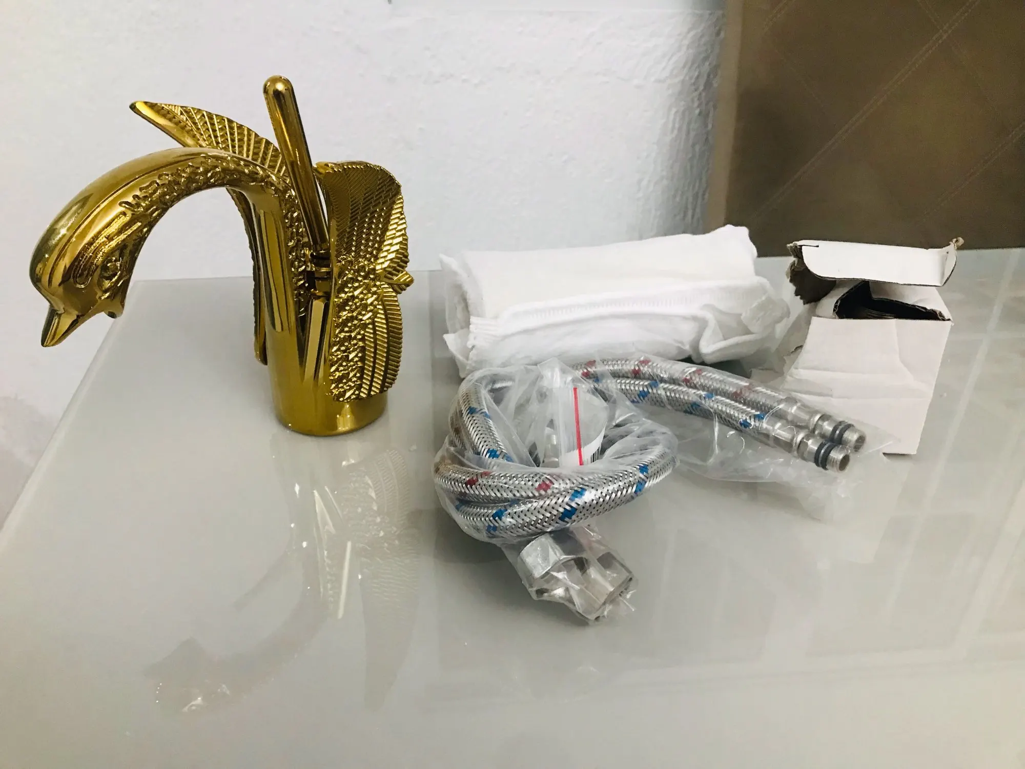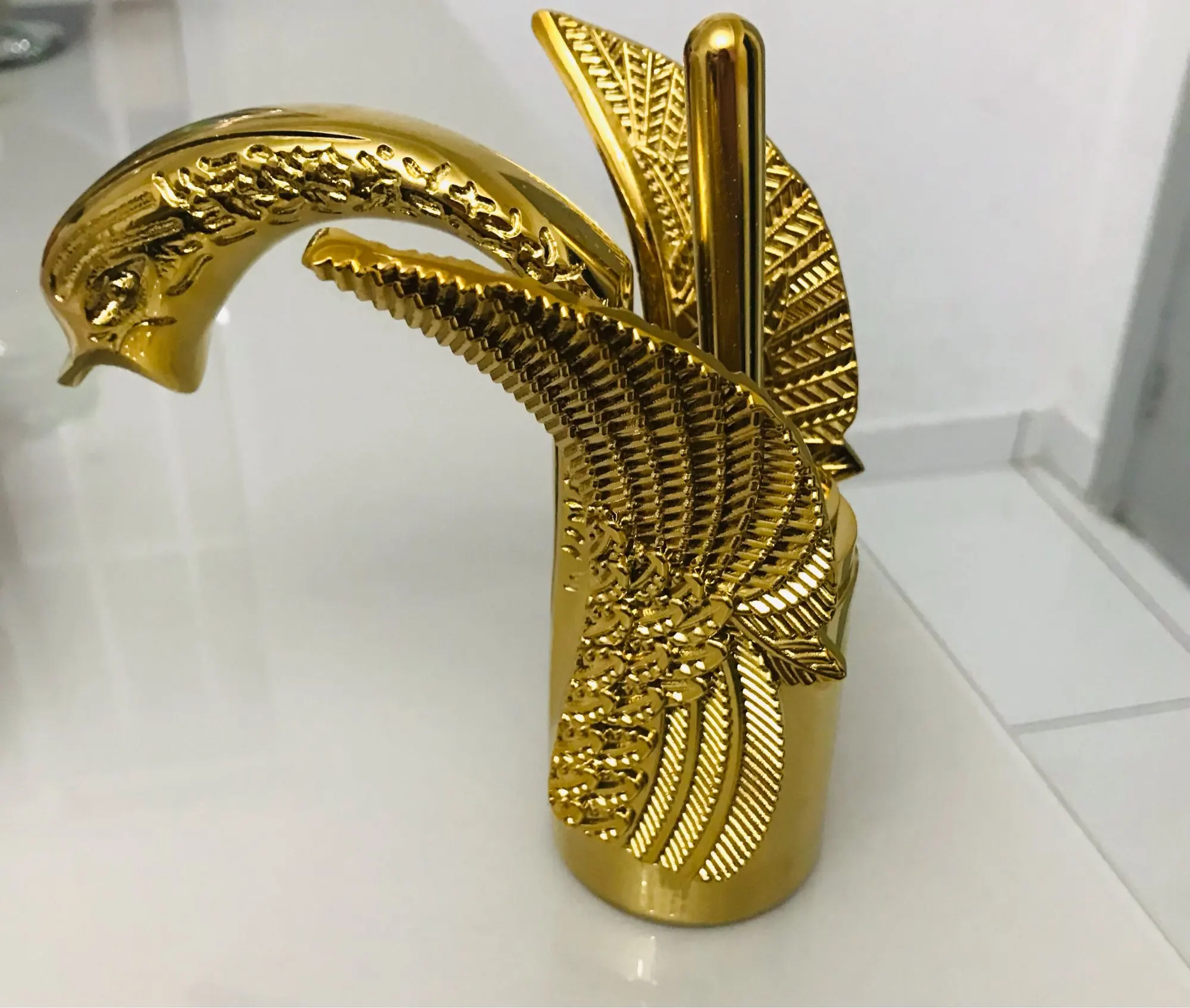 1* Golden Swan Shape Deck Mount Vessel Basin Sink Faucet