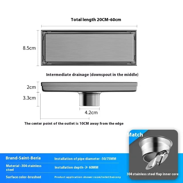 Achieve a sleek and seamless look in your bathroom with the Index Bath Invisible Floor Drain. Crafted from high-quality stainless steel, this drainage strainer is designed to blend perfectly into your floor. Its anti-odor system effectively blocks unpleasant smells from the drain, ensuring a fresh and clean environment. The durable stainless steel construction resists rust and corrosion. Ideal for modern bathrooms.