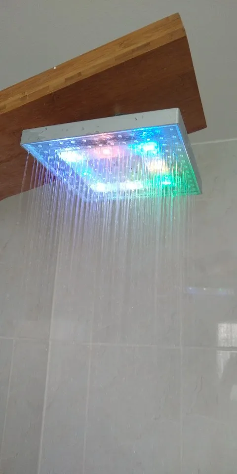 The Index Bath LED Rainfall Square Shower Head Color-Changing Temperature Sensor is a square shower head with led lights. The color of the led light will change and you can adjust the water temperature in order to make it fit your mood.