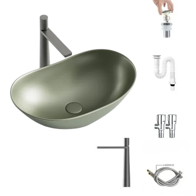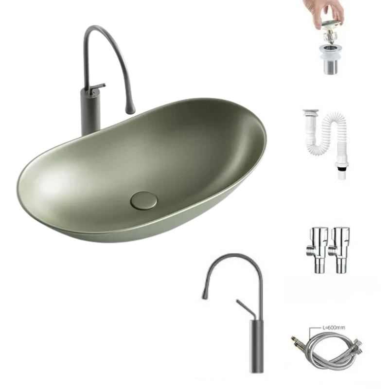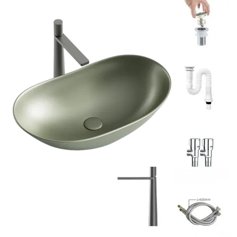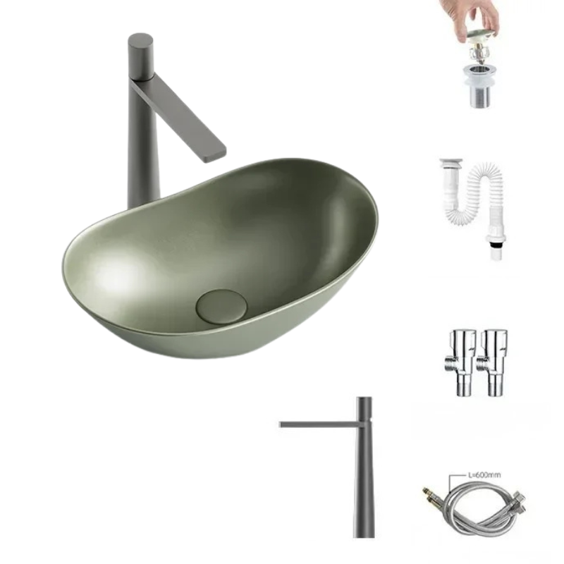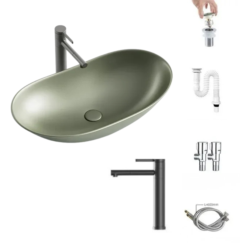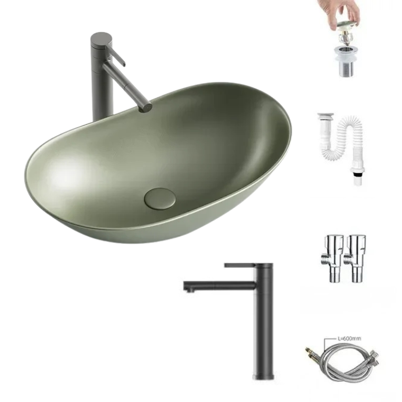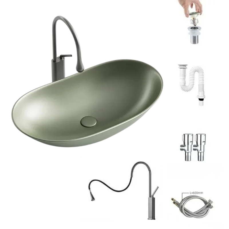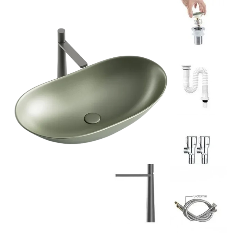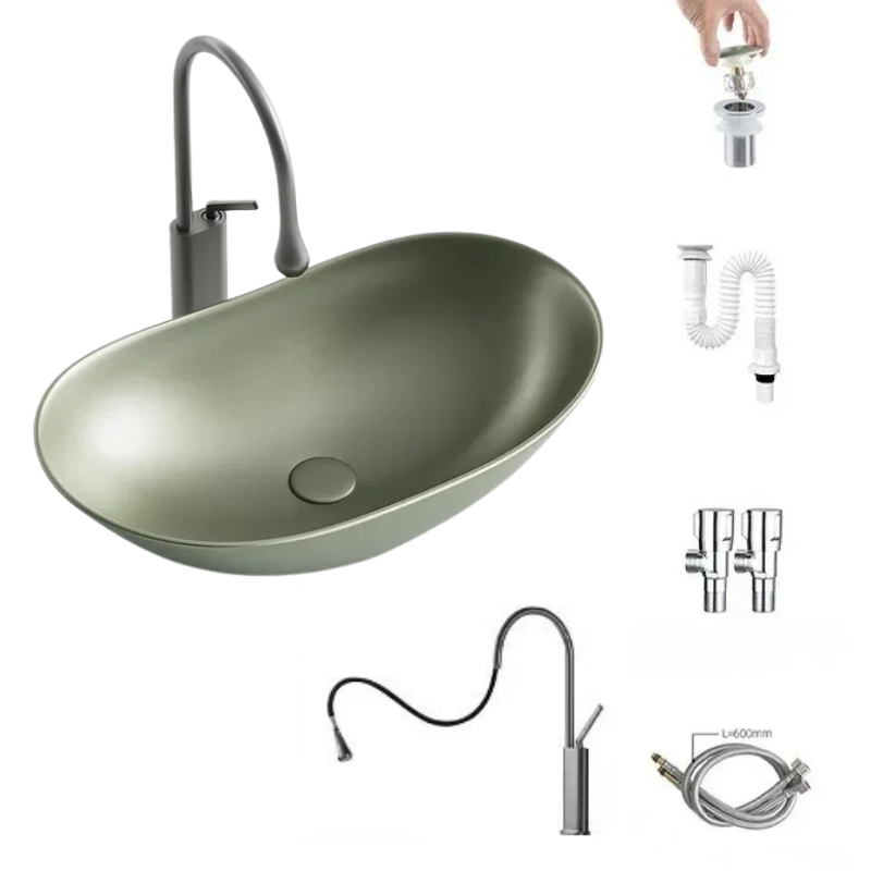 1 * Light Luxury Oval Ceramic Sink Large Capacity Bathroom Basin Sink
