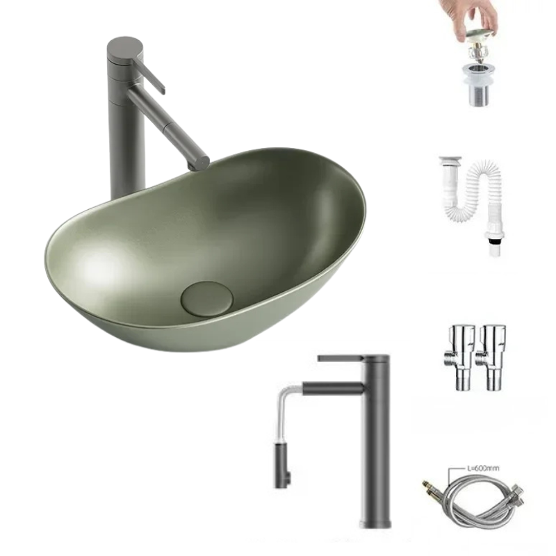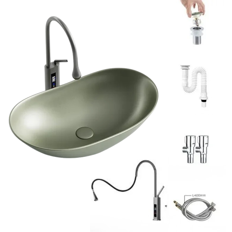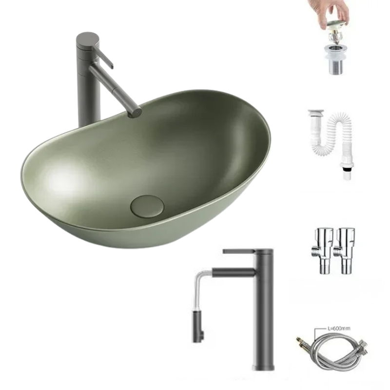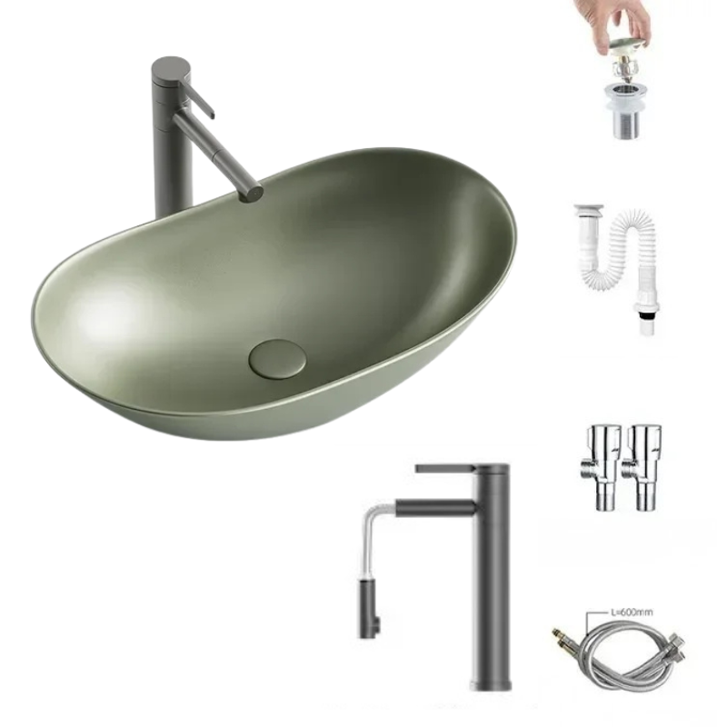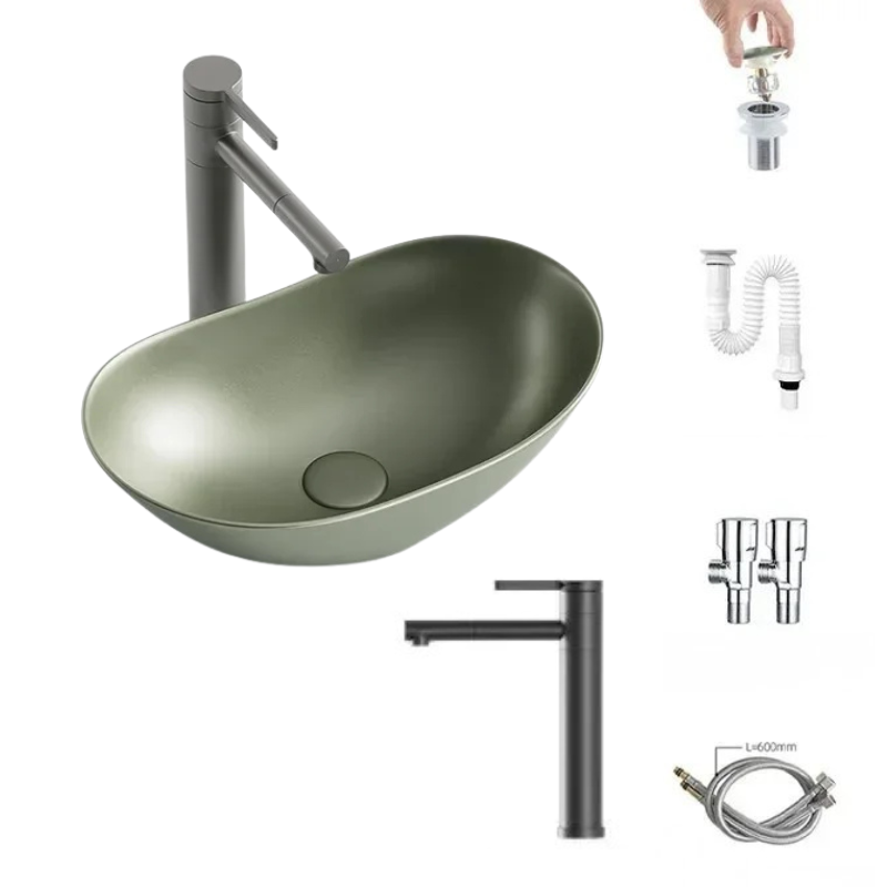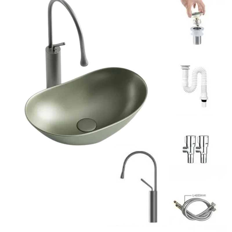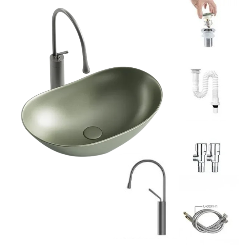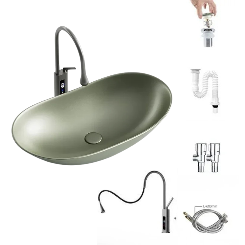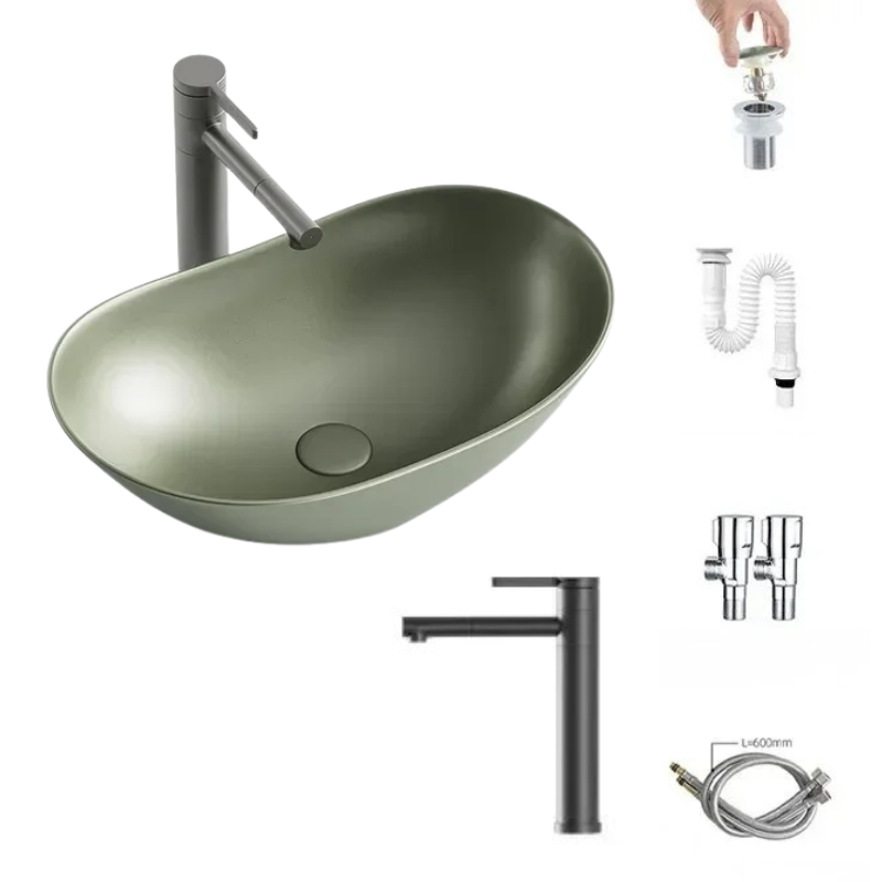 1 * Light Luxury Oval Ceramic Sink Large Capacity Bathroom Basin Sink