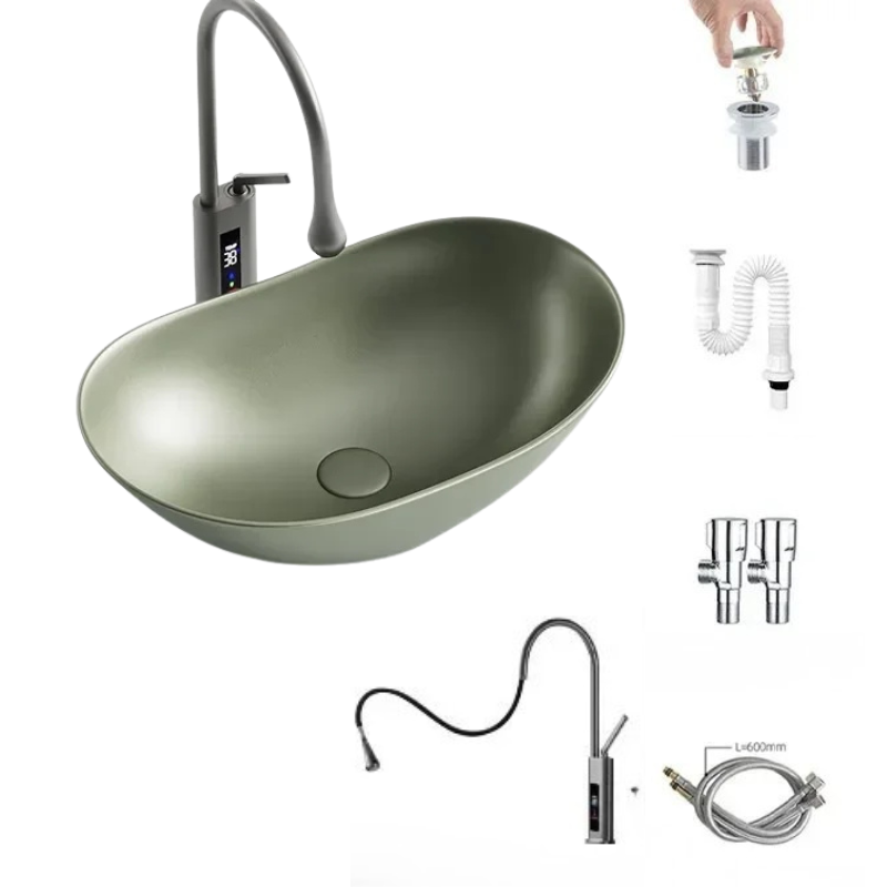 Upgrade your home with this Light Luxury Oval Ceramic Sink Large Capacity Bathroom Basin Sink from Index Bath, designed with a spacious large-capacity basin and a fashionable, multifunctional style suitable for kitchens, bathrooms, and modern household wash areas. Its elegant oval shape, make it a stunning statement piece that blends beauty with practical everyday use.