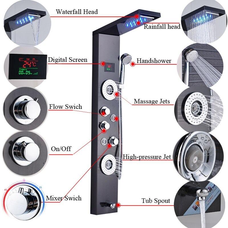 1* Modernized Bathroom Shower Faucet with LED Shower Panel Column