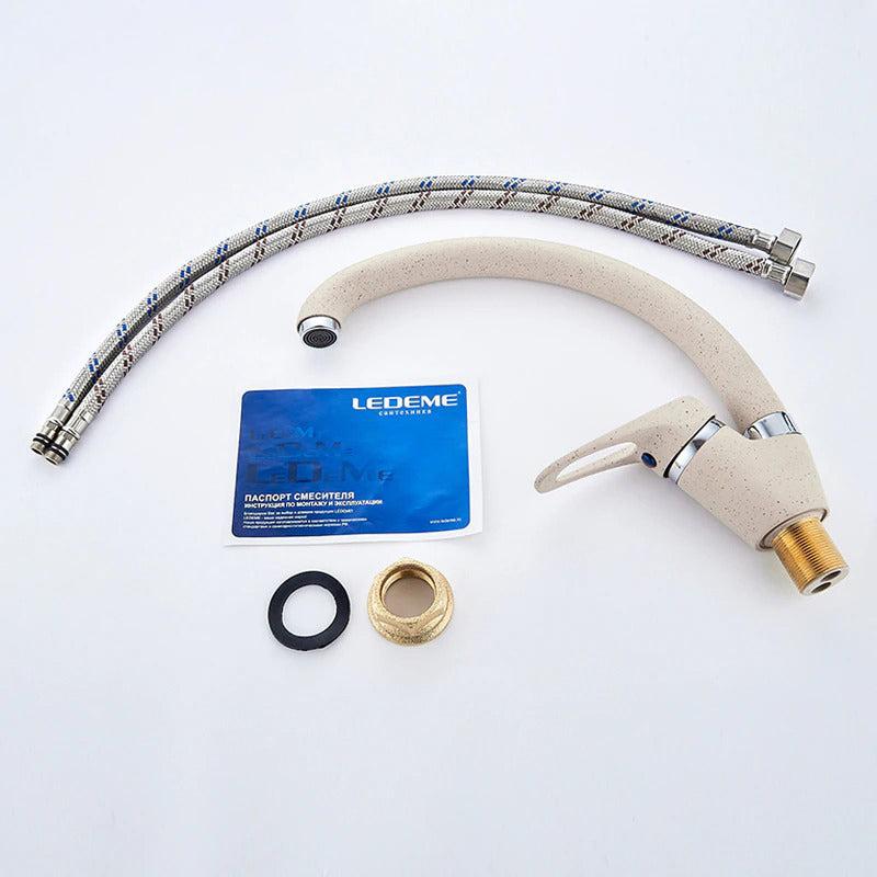 The Index Bath Multi-color Kitchen Faucet Modern Style Home Water Tap Single Faucets is a high-quality faucet made with solid brass. The double-layer handle ensures clearance. A durable ceramic cartridge ensures no leak or drip. It's easy to install and use, with a classic style and looks great in any modern kitchen.