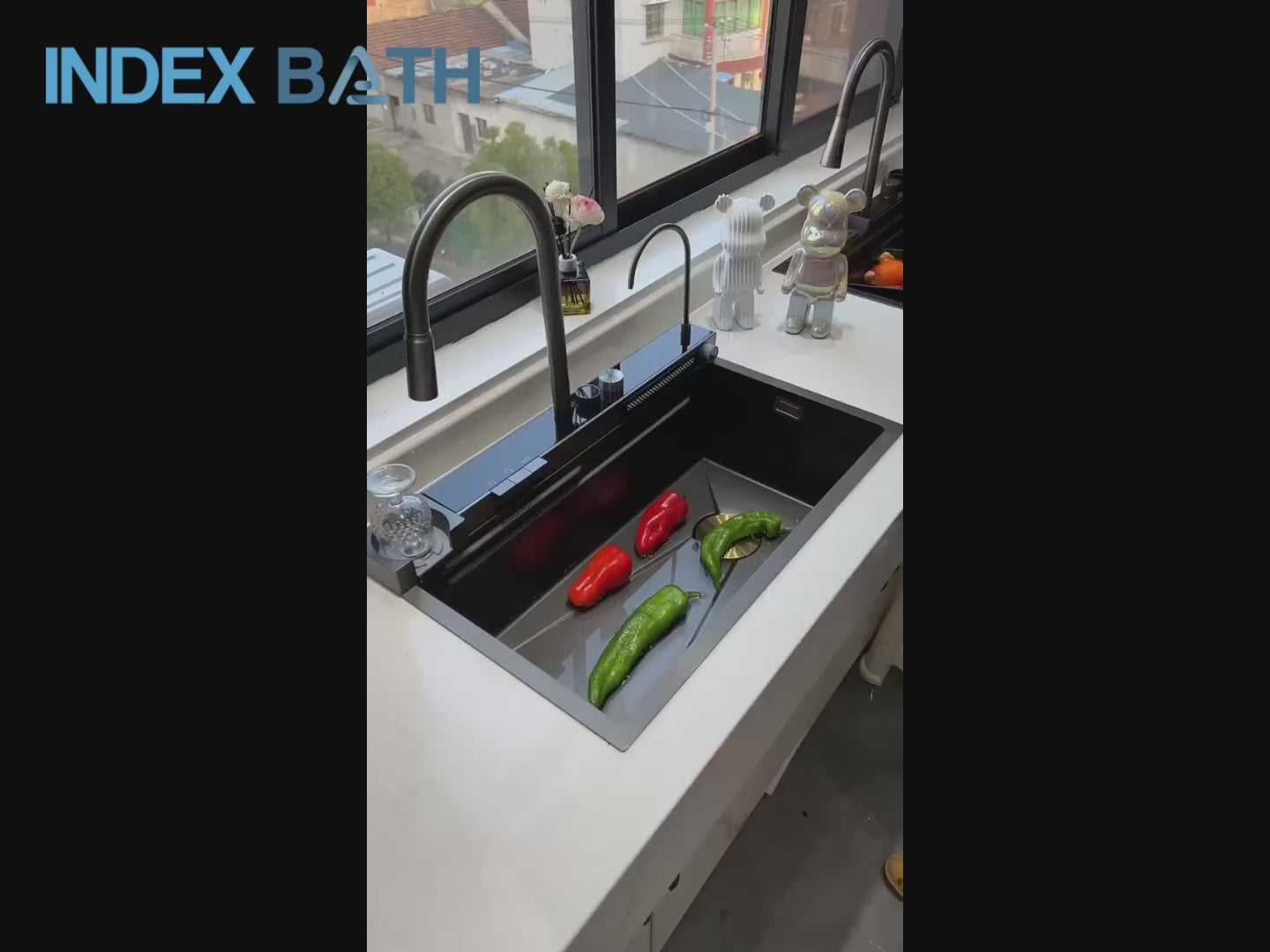 Introducing the Index Bath Stainless Steel Multifunctional Kitchen Sink featuring a sleek waterfall faucet. Designed for both beauty and practicality, this combination brings elegance and enhanced functionality to your kitchen. Made from high-quality stainless steel, the sink is rust-resistant, easy to clean, and built for long-lasting use.