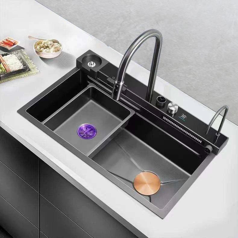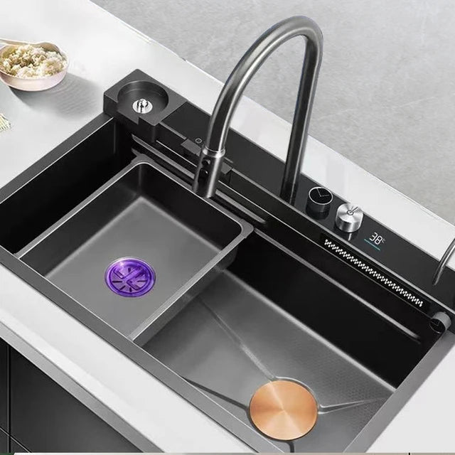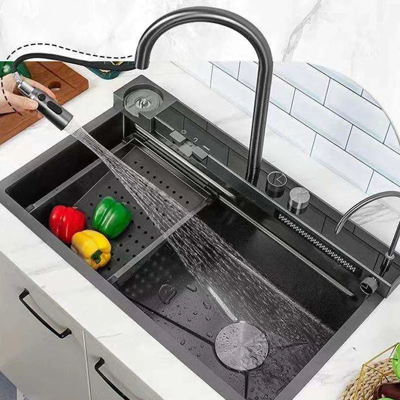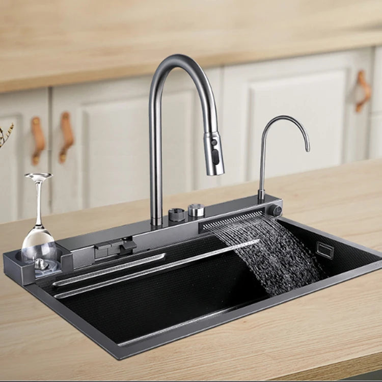 Stainless Steel Multifunctional Kitchen Sink with Waterfall Faucet