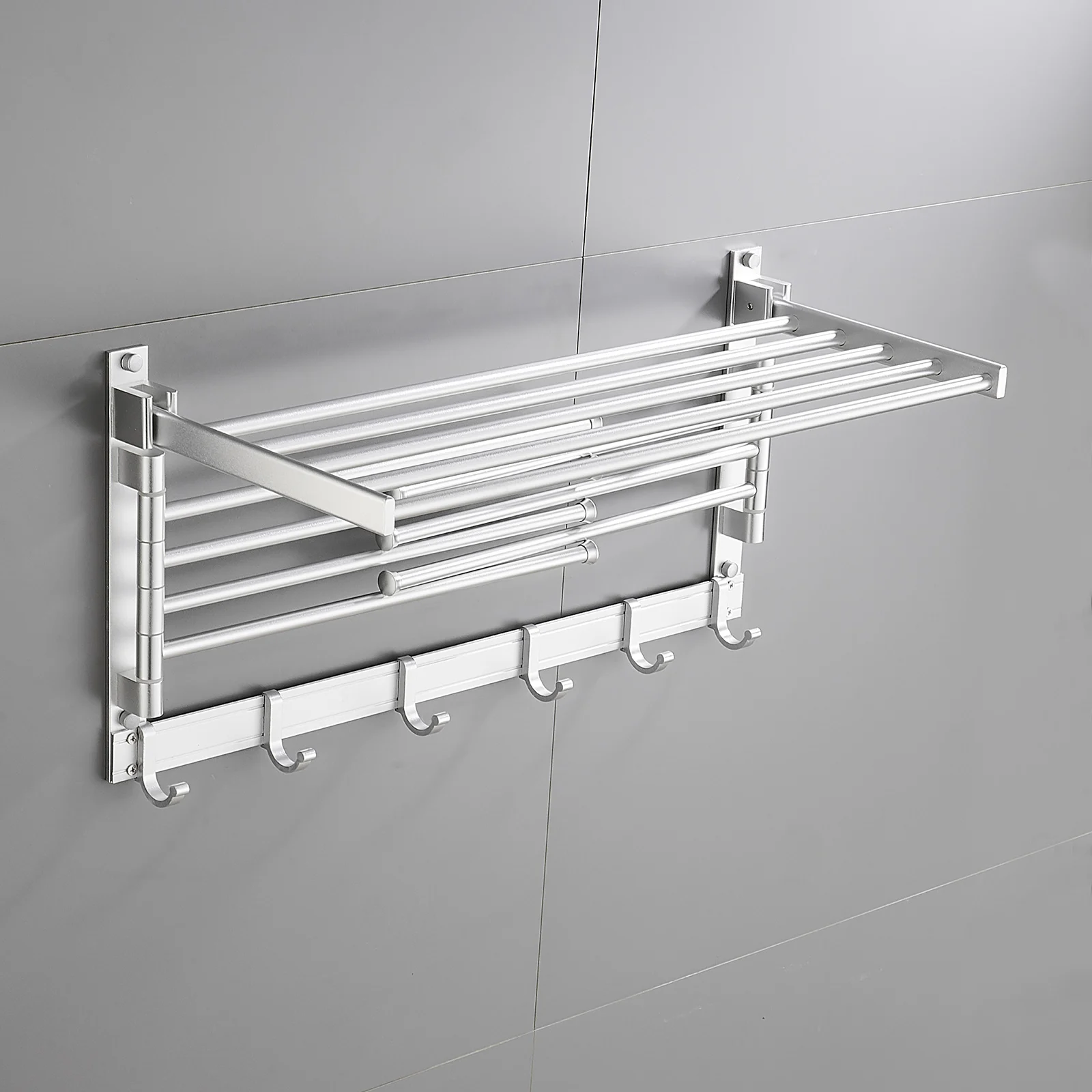 Aluminum Bathroom Towel Bar Rack with Movable Hooks and Swing Arms