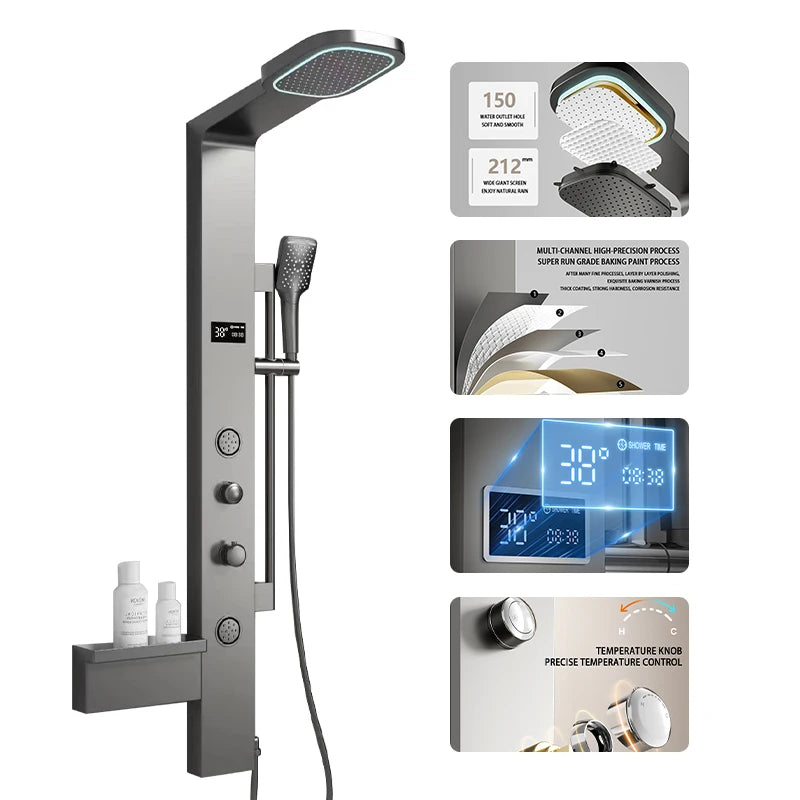 Designed with smart technology, this Index Bath Water Rain Mixer System Thermostatic Bathroom shower allows you to easily adjust water flow and temperature. Crafted from high-quality materials, it combines sleek design with modern functionality, making it a perfect addition to any contemporary bathroom. Enjoy the ultimate in relaxation and convenience with this smart shower set!