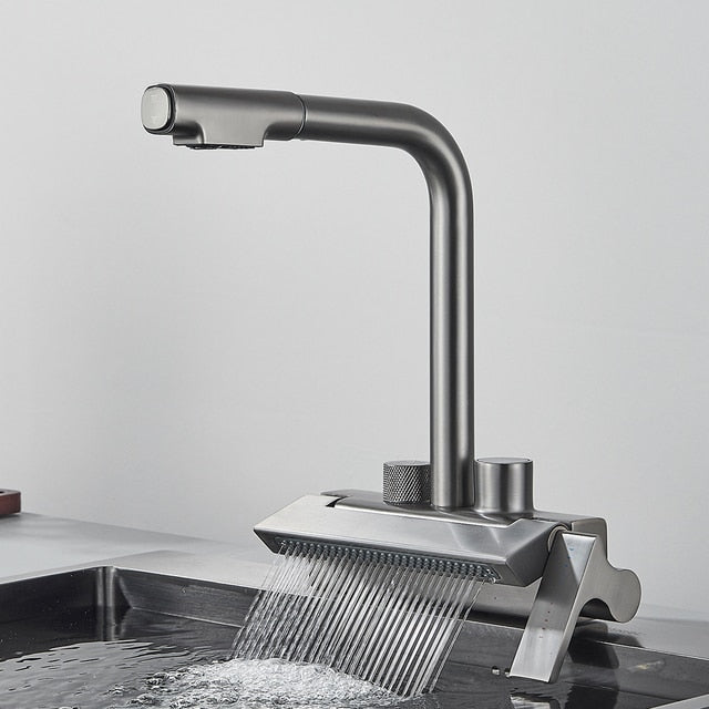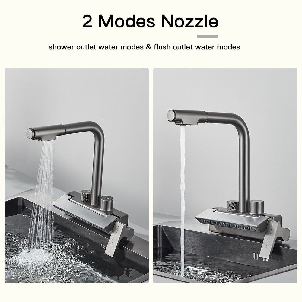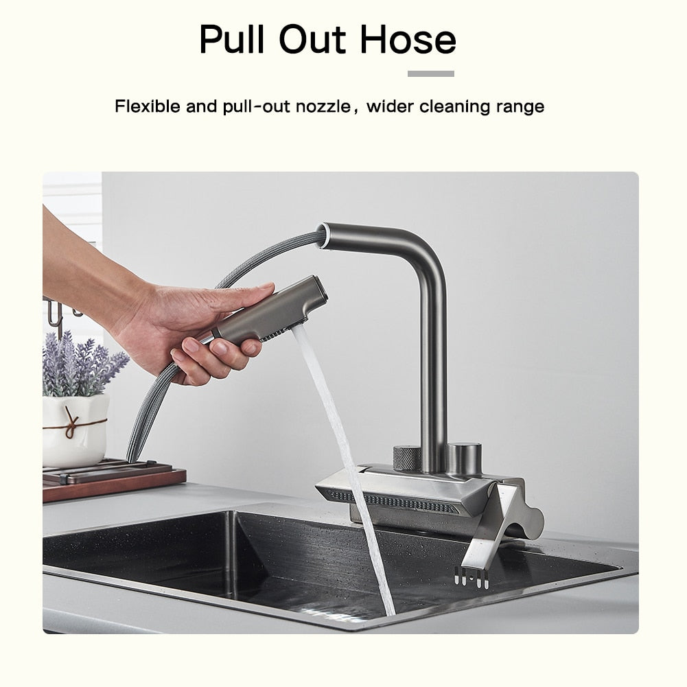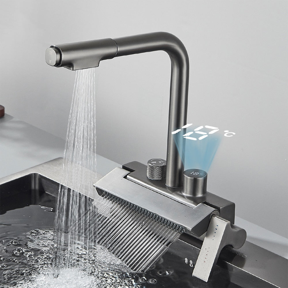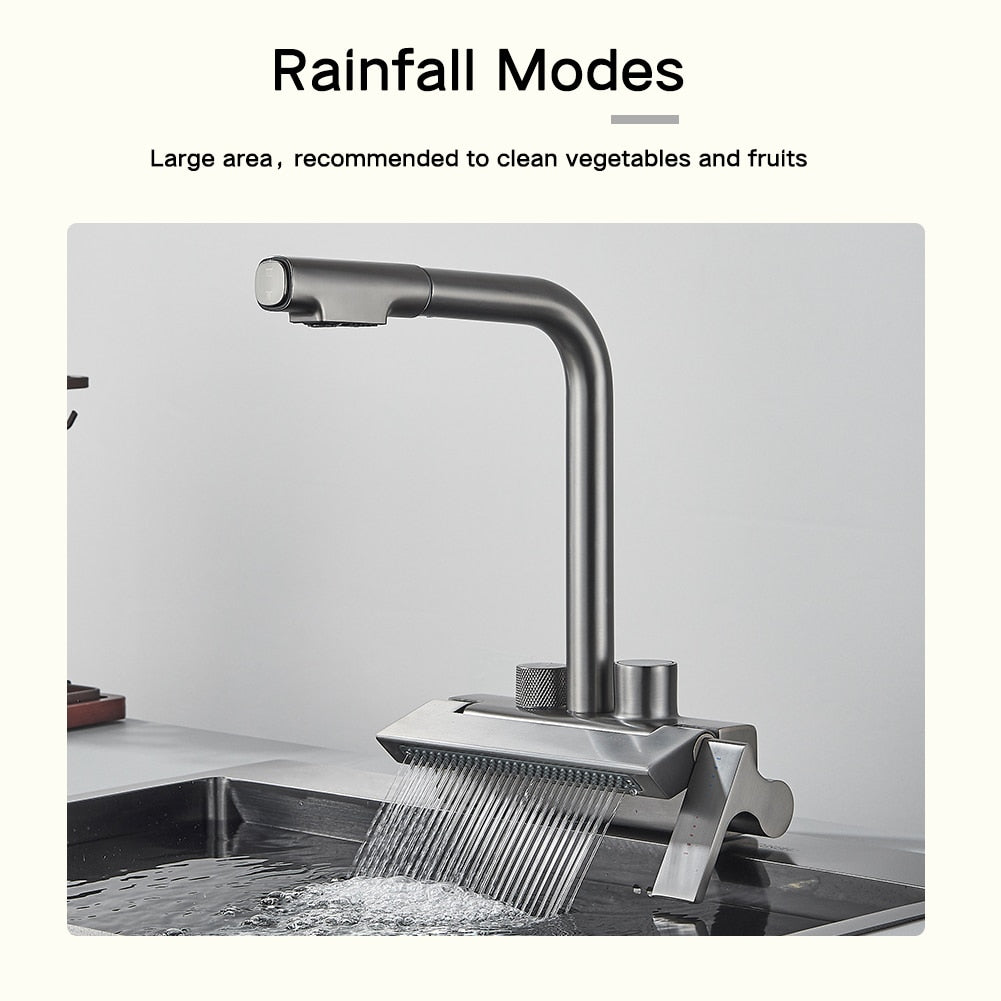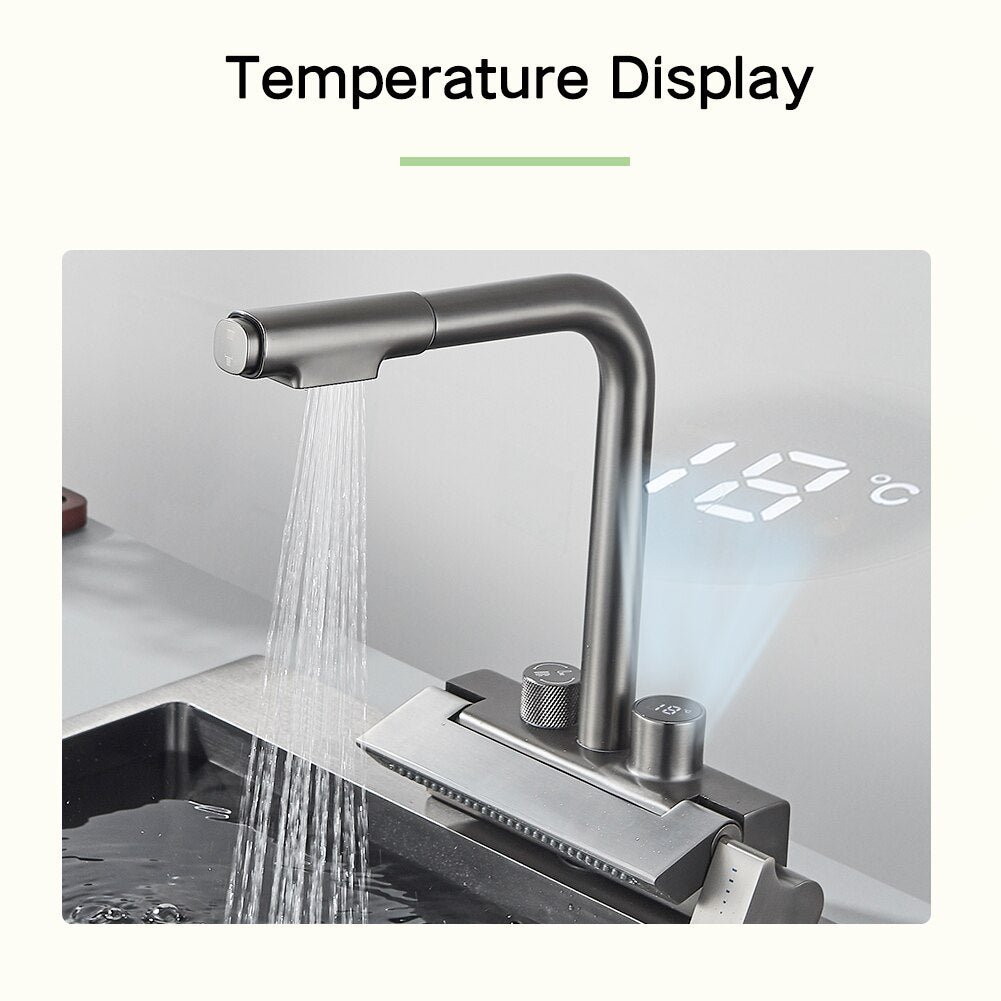 Rainfall Kitchen Faucet Temperature Digital Display Pull Out Tap