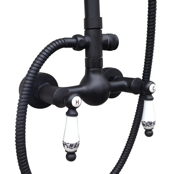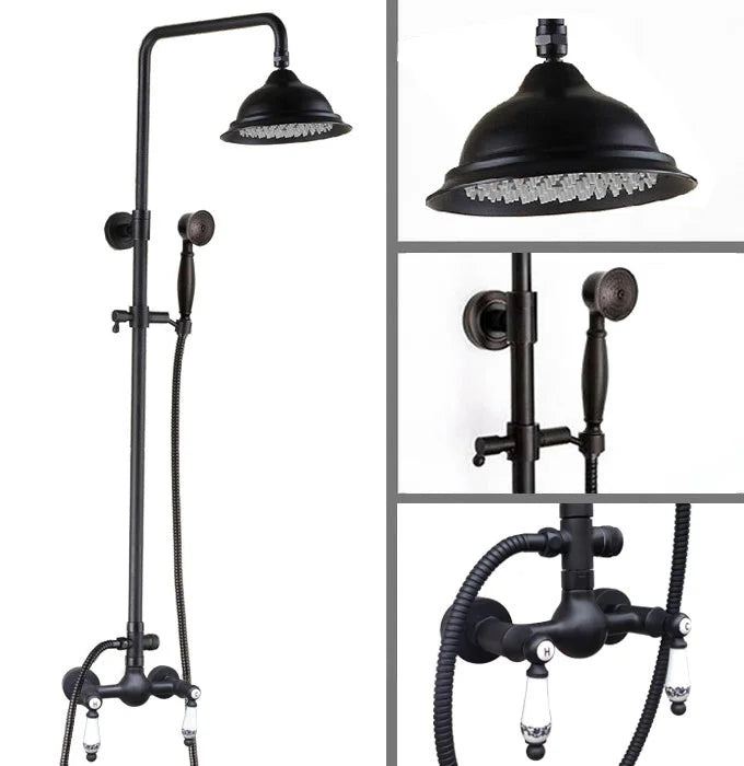 Round shower Head Oil Rubbed Bronze Dual Ceramics Handles Mixer Tap