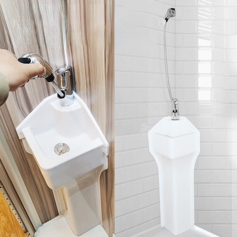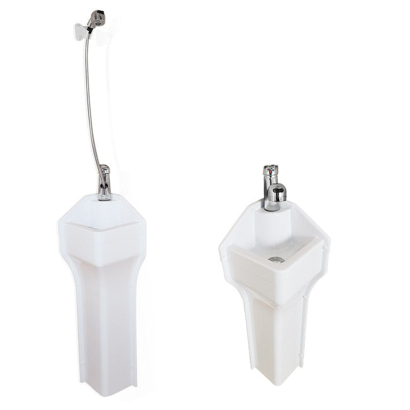 Index Bath's unique Camper Trailer triangular Wash Basin Sink is a self-contained, portable wash sink designed for use in recreational vehicles or campers. The RV Toilet Basin wash basin is lightweight, expandable, and collapsible to fit anywhere you need it. It installs simply by securing with adjustable straps that fasten around the toilet basin drain pipe.