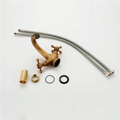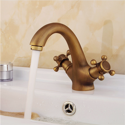1 * Solid Brass Bronze Double Handle Control Antique Faucet Kitchen Tap