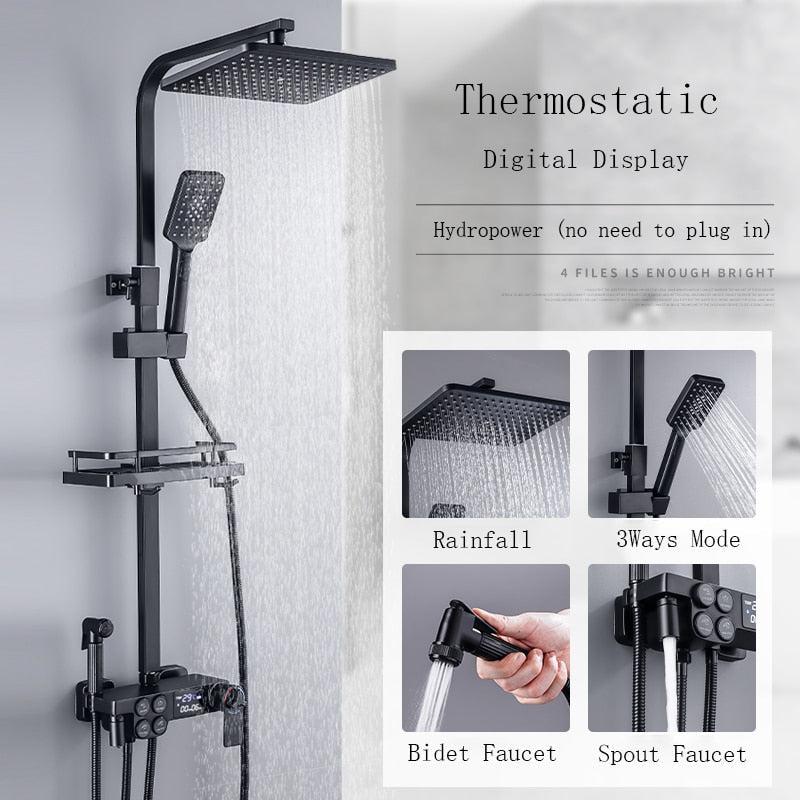 1*Thermostatic Digital Display Shower Faucet Rain Shower Faucet Bidet