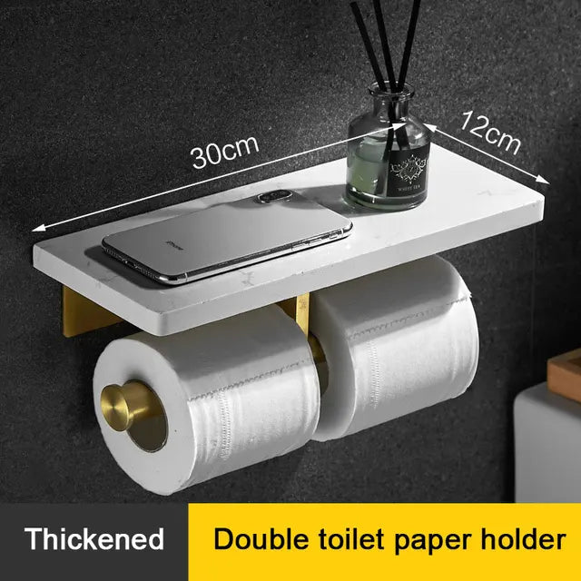 Toilet Paper Holder with Natural Marble Shelf Bathroom Tissue Holder
