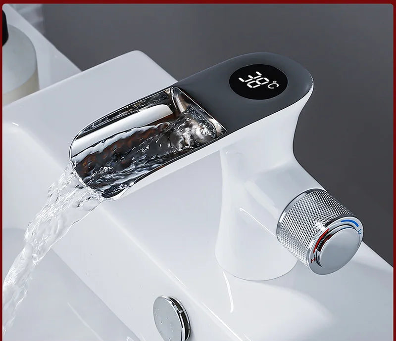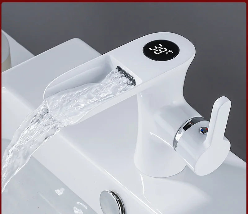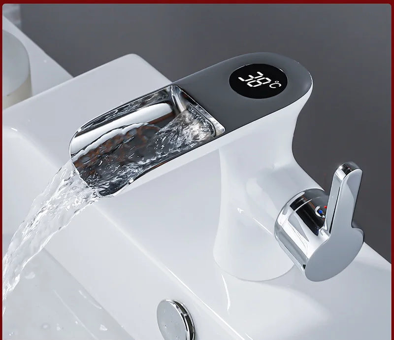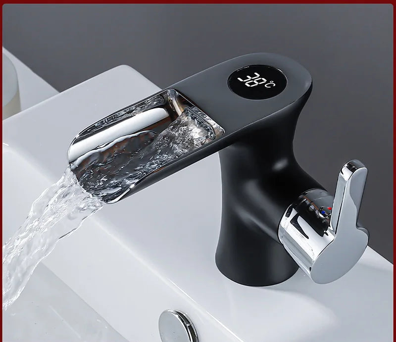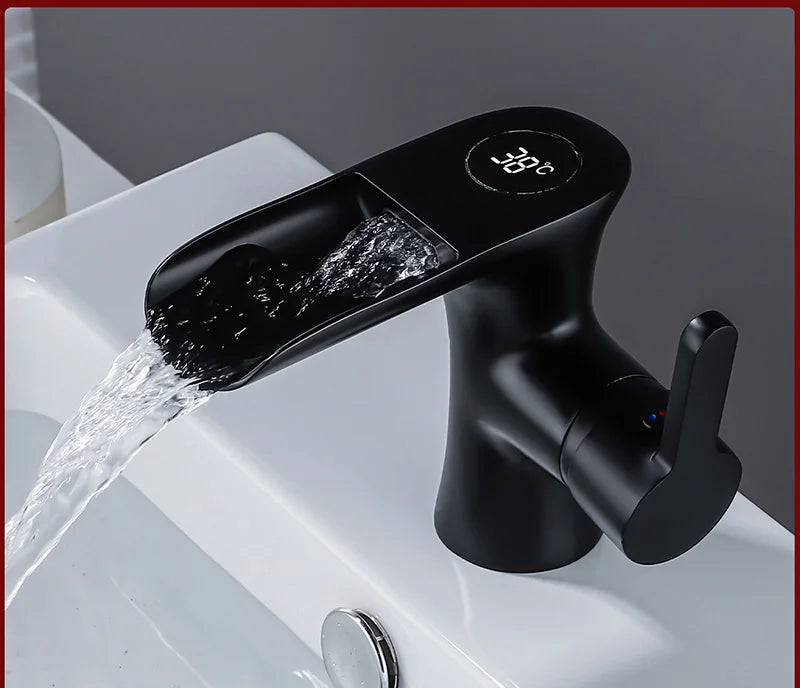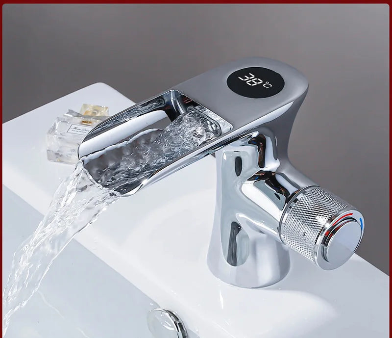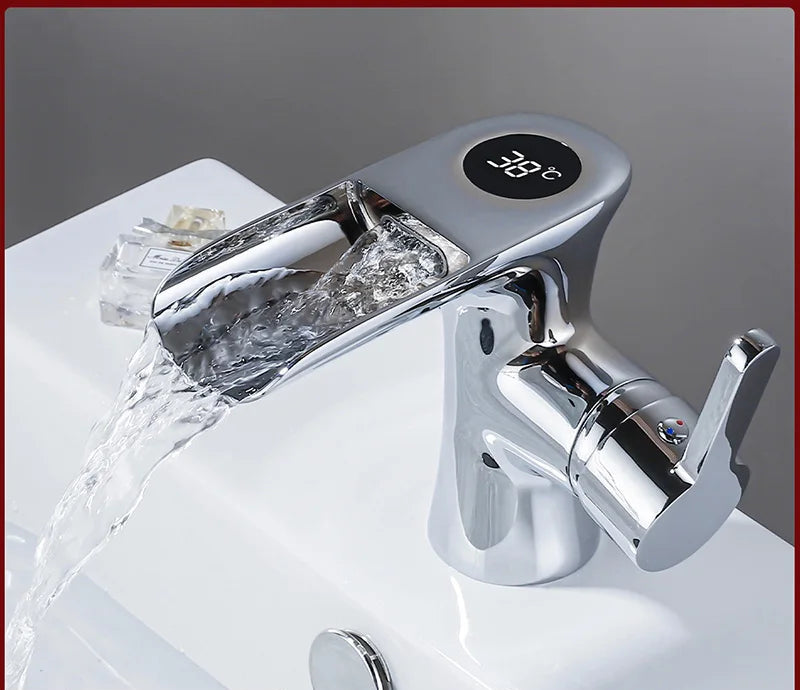 Brass LED Temperature Basin Faucet Hot and Cold Water Mixer Tap