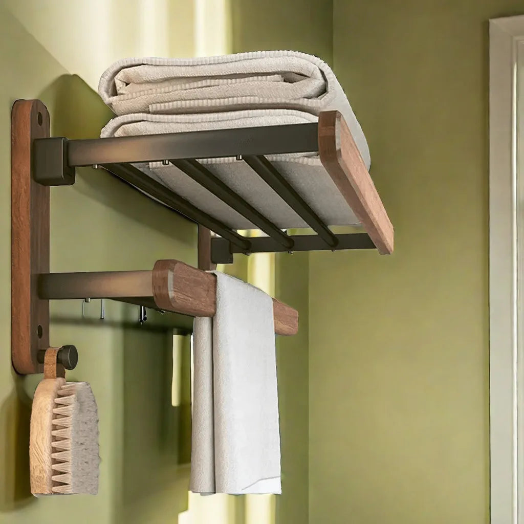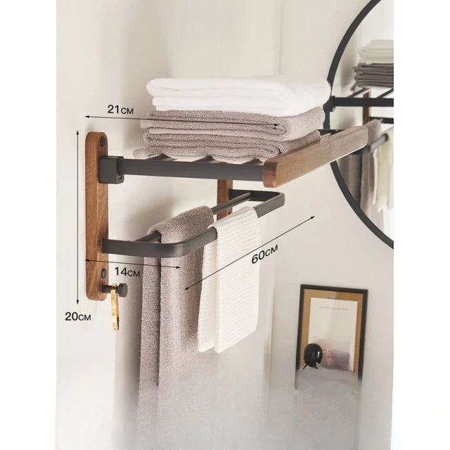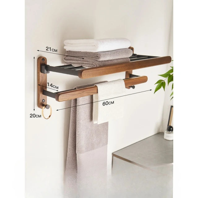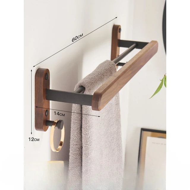 Towel Holder Walnut Towel Rack No Punch Shelf Bathroom Accessory