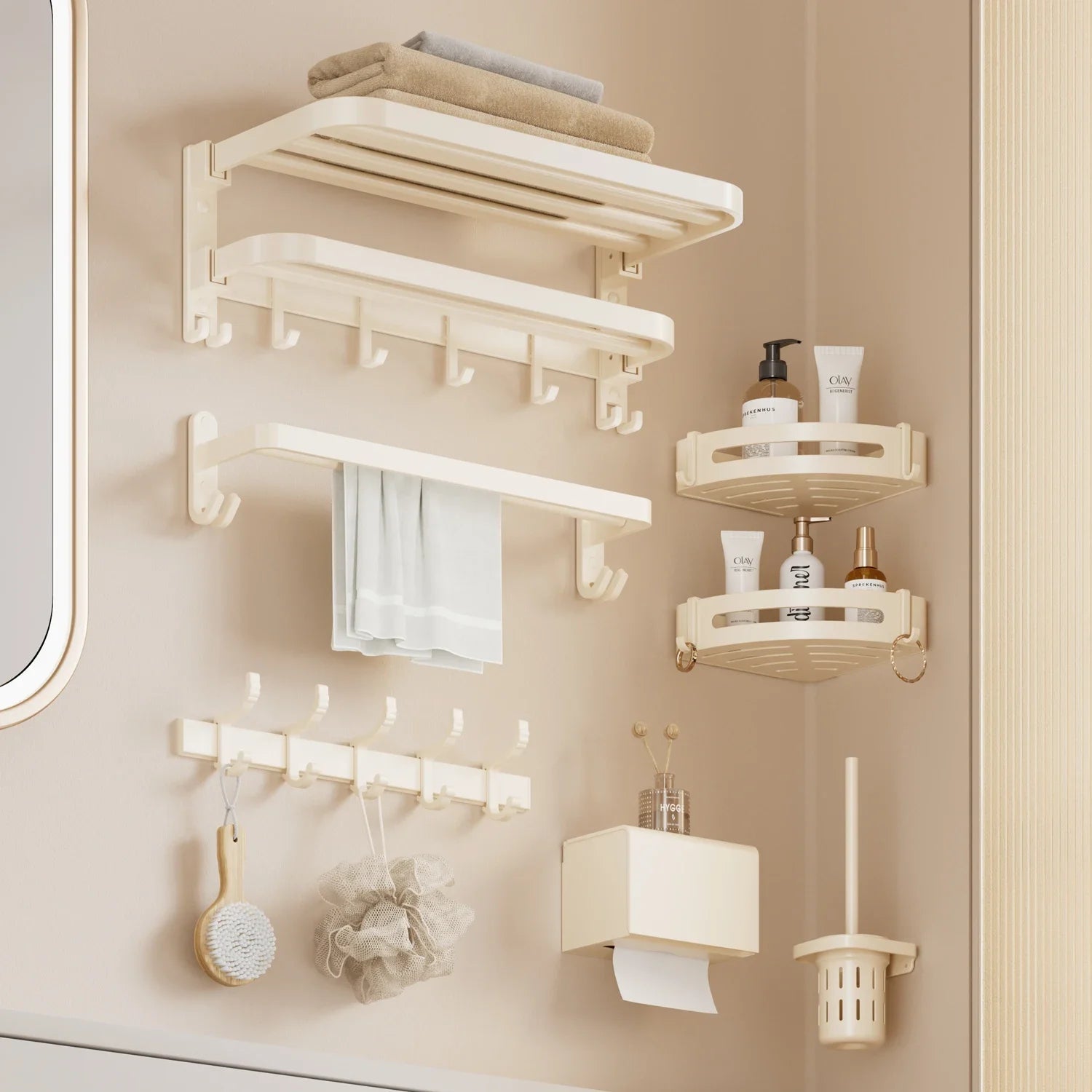 - Optional Type Towel Rack/Double Shelves/Towel Bars/Robe Hooks/Paper Holders