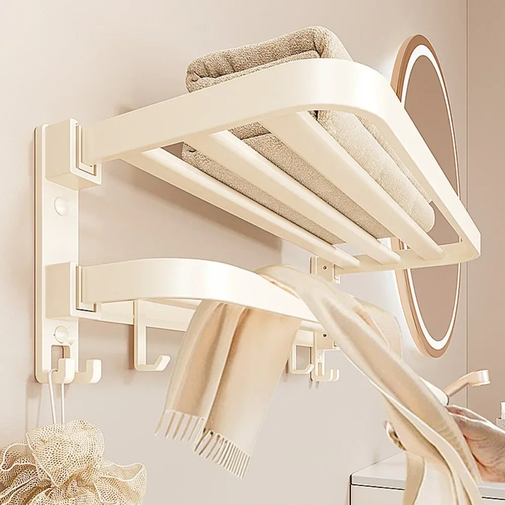 Towel Rack Fold Space Shower Hanging Rod Hook Bathroom Accessories
