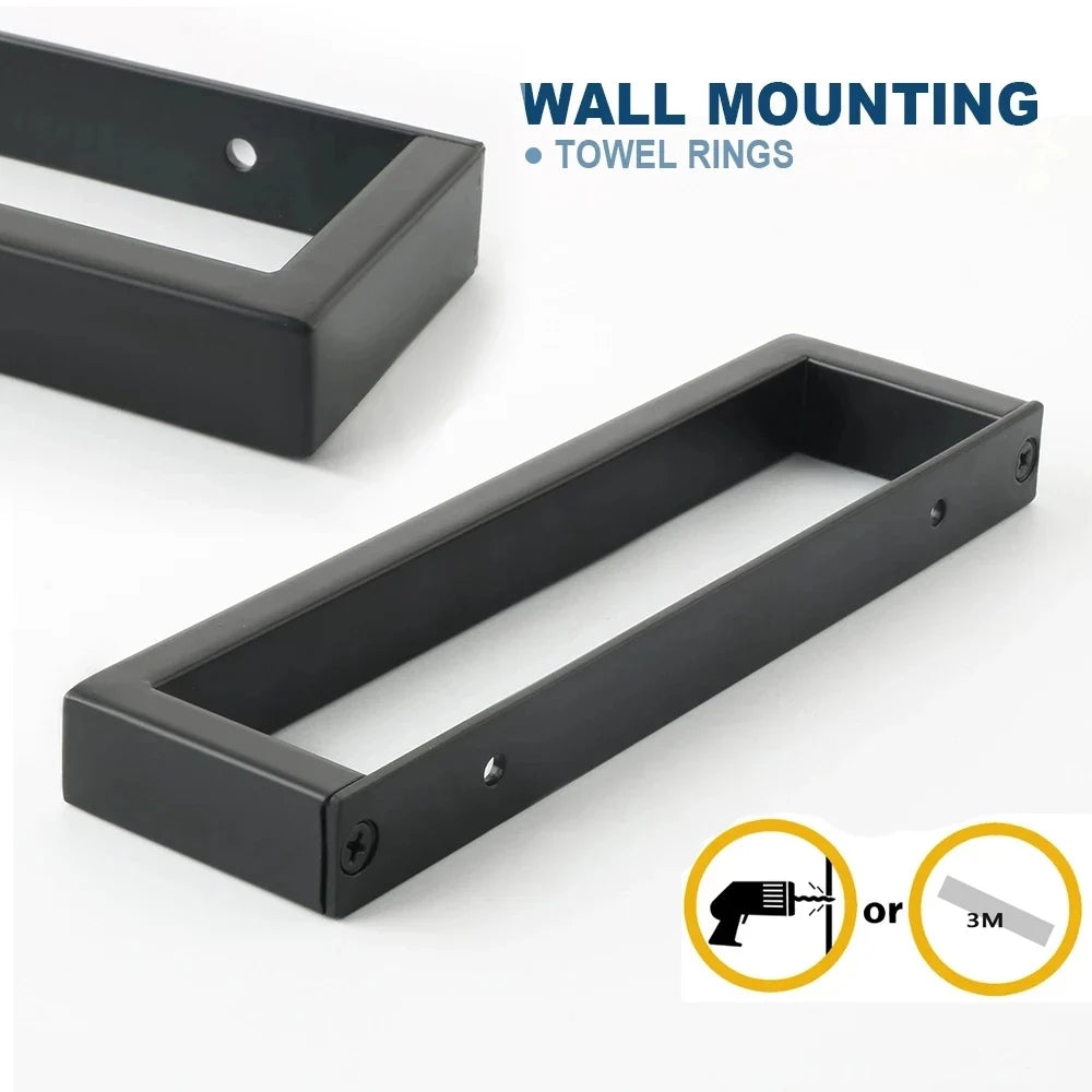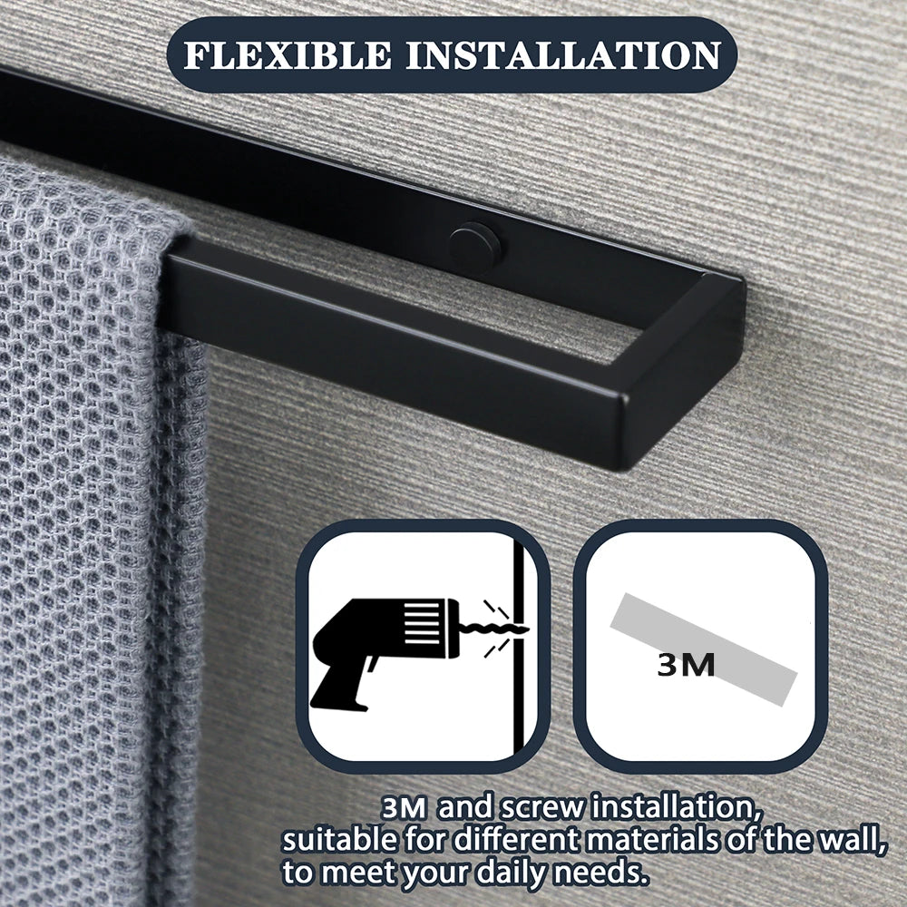 Wall-Mounted Bathroom Towel Holder Towel Bar Black Towel Rail