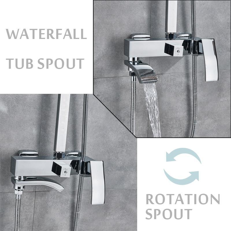 Feel and experience the new vibe that this Wall Mounted Rainfall Shower Head Faucet Single Handle Mixer Tub Spout Shower System from Index Bath can offer. Crafted from premium materials to ensure durability and great strength.