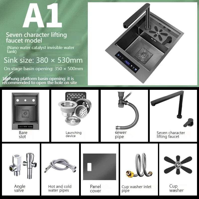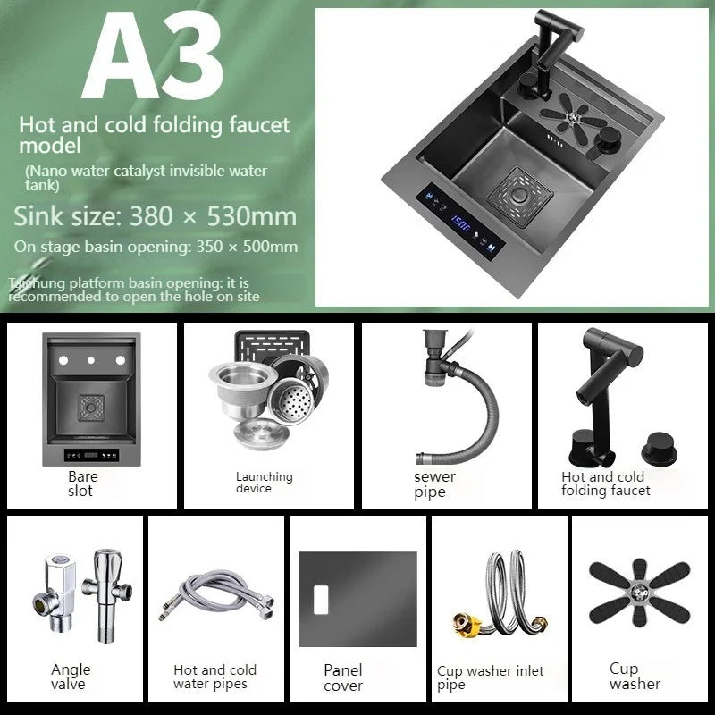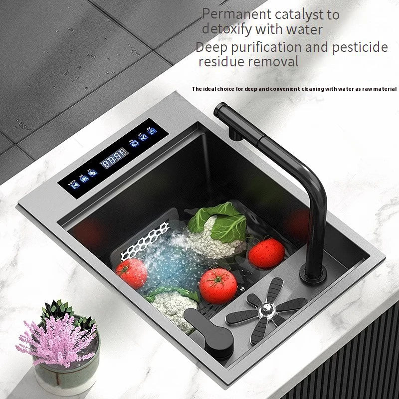 Upgrade your prep station with the Index Bath Stainless Steel Small Kitchen Sink with Lid and Vegetable Disinfection – a compact and powerful solution designed for bars, cafes, and small kitchens. This stainless steel sink combines advanced washing tech with modern convenience, making it perfect for fruit and vegetable disinfection, cup rinsing, and quick dishwashing.