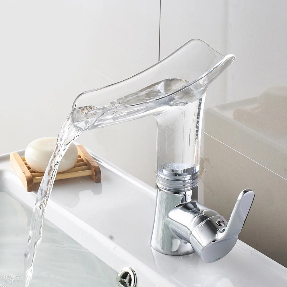 1*Transparent Deck Mounted Bathroom Basin Faucet Mixer Tap